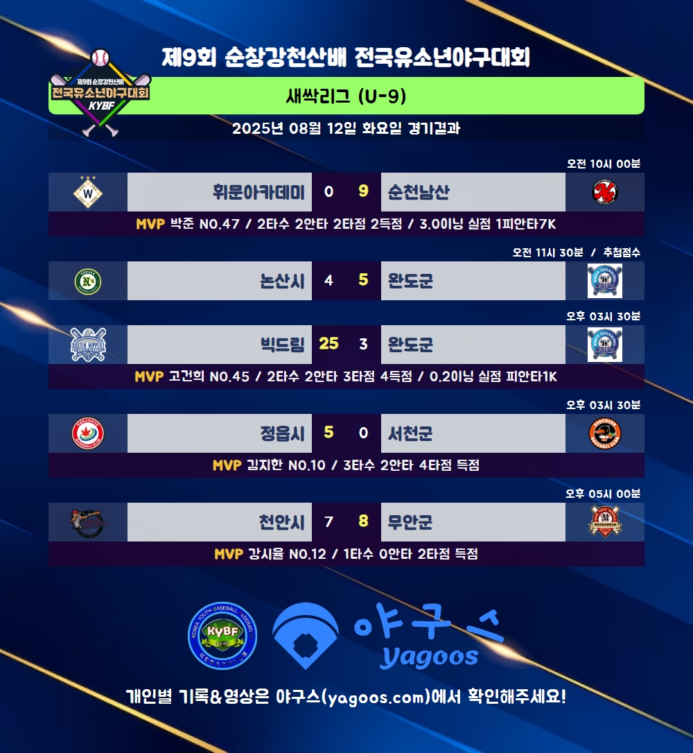 [2025] 2025 제9회 순창강천산배 전국유소년야구대회