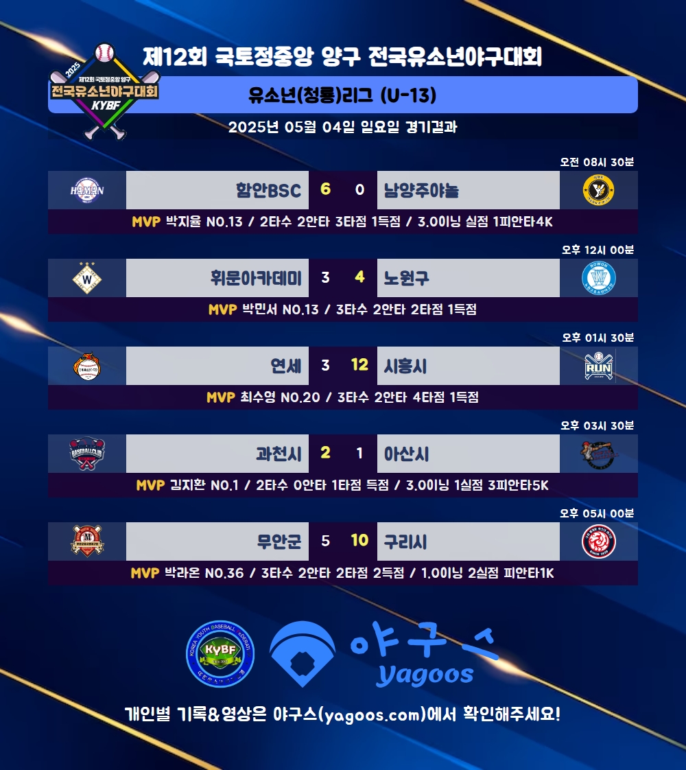 [2025] 제12회 국토정중앙 양구 전국유소년야구대회