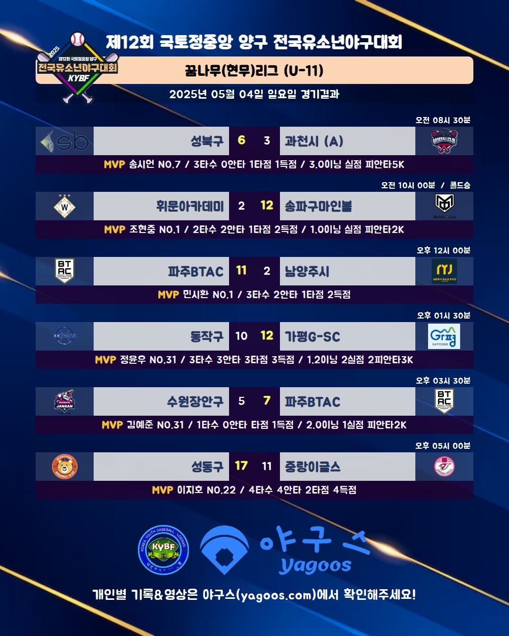[2025] 2025 제2회 마이데일리배 전국유소년야구대회