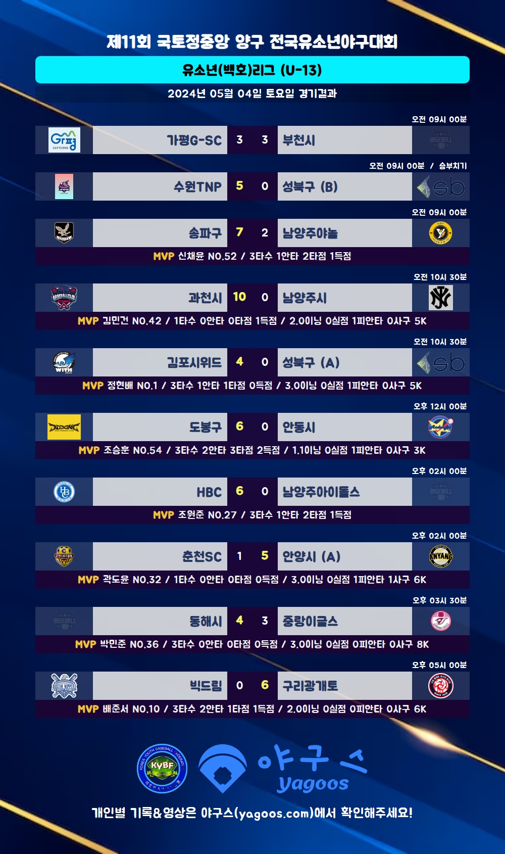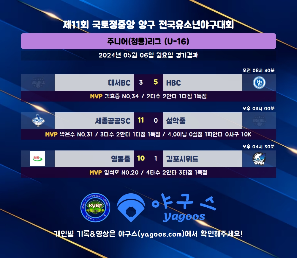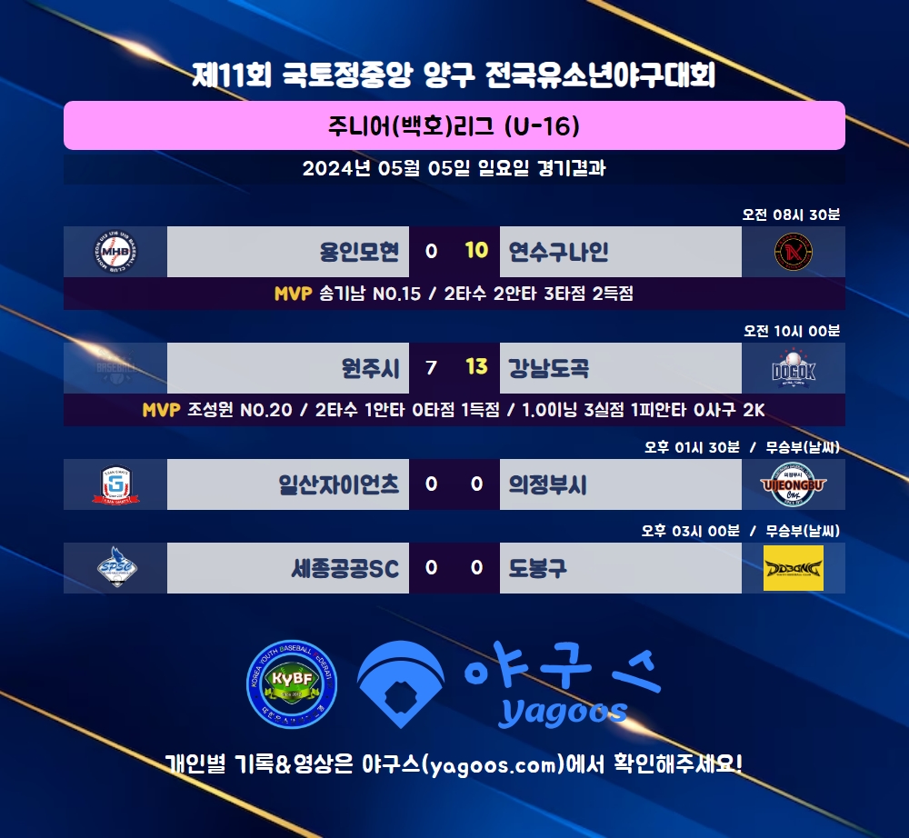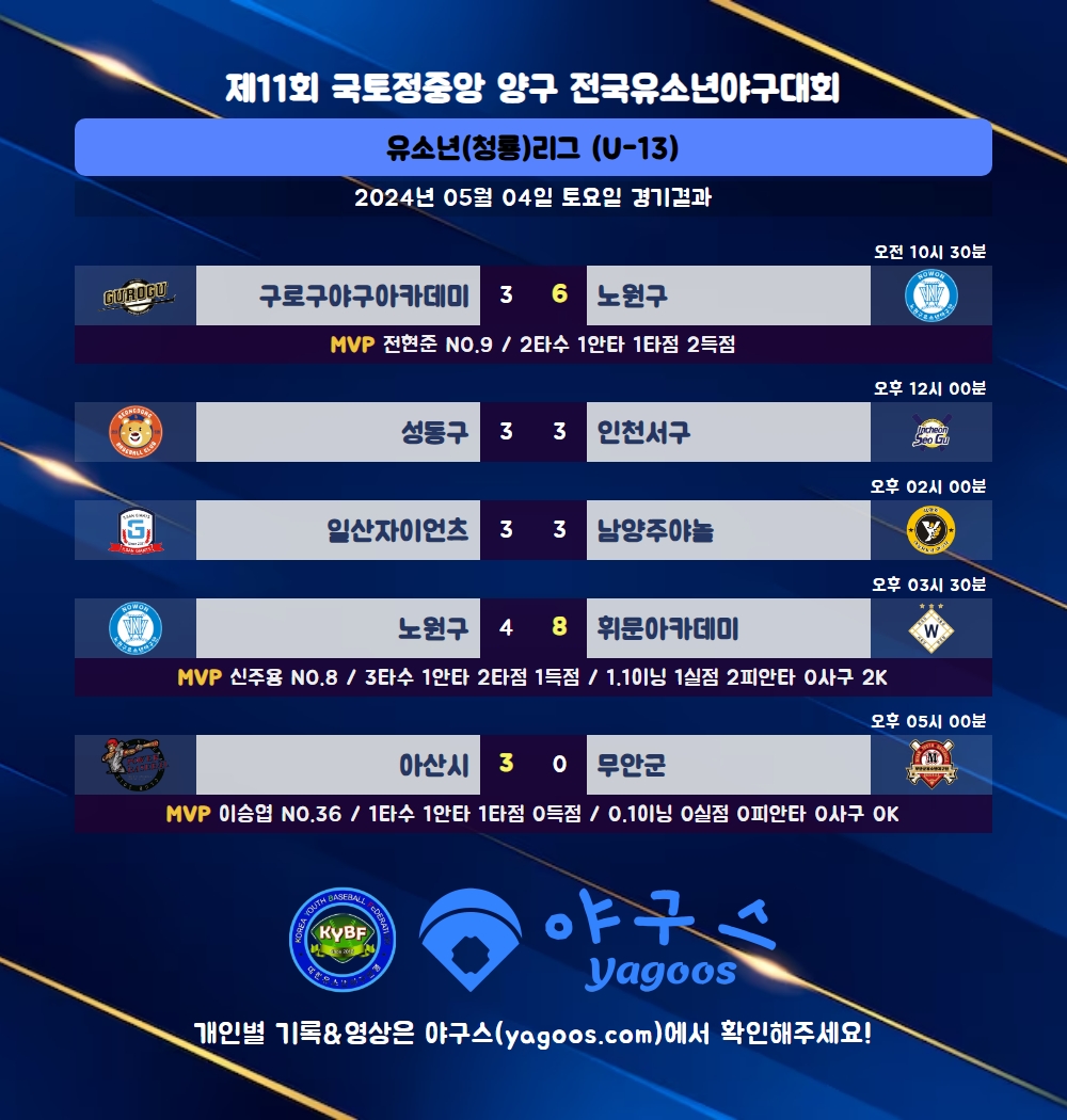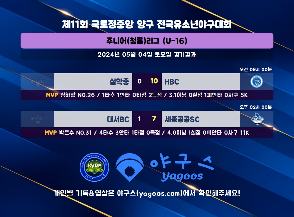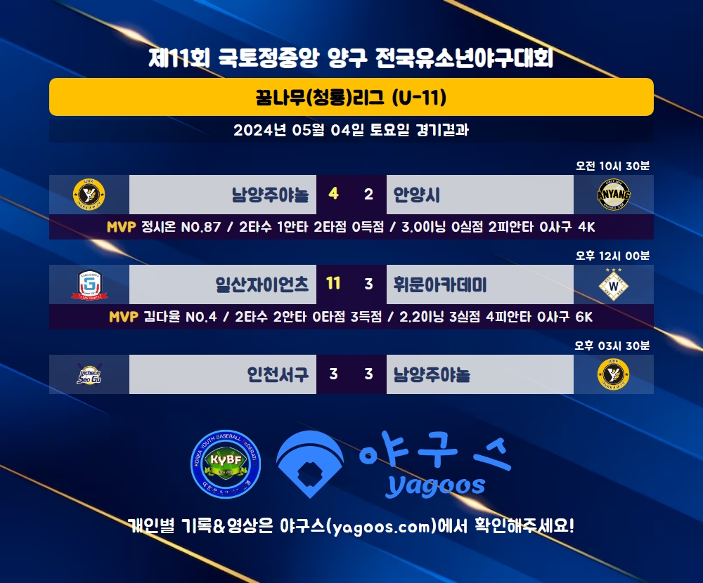 [2024] 제11회 국토정중앙 양구 전국유소년야구대회