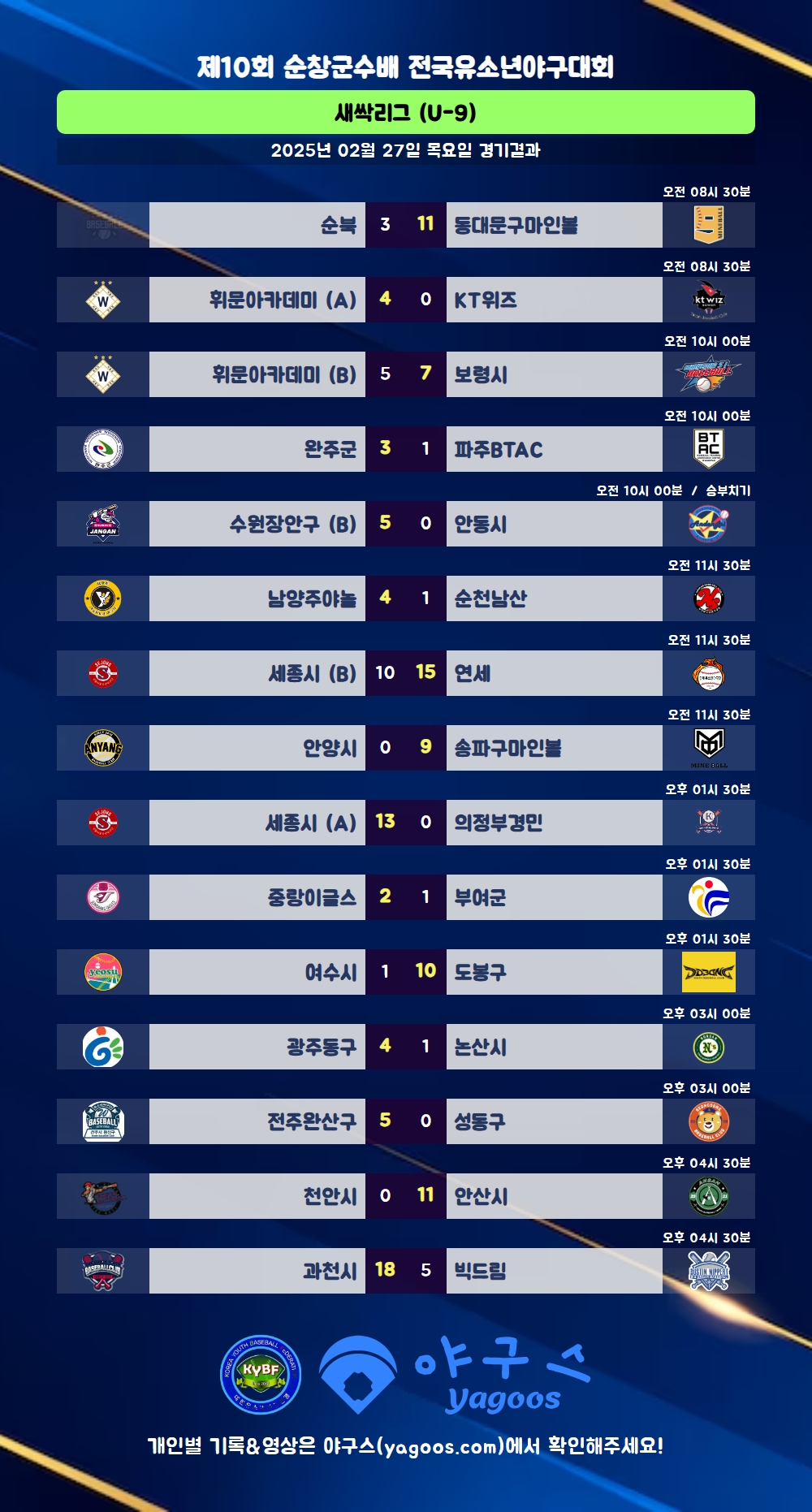 [2025] 2025 제9회 순창강천산배 전국유소년야구대회