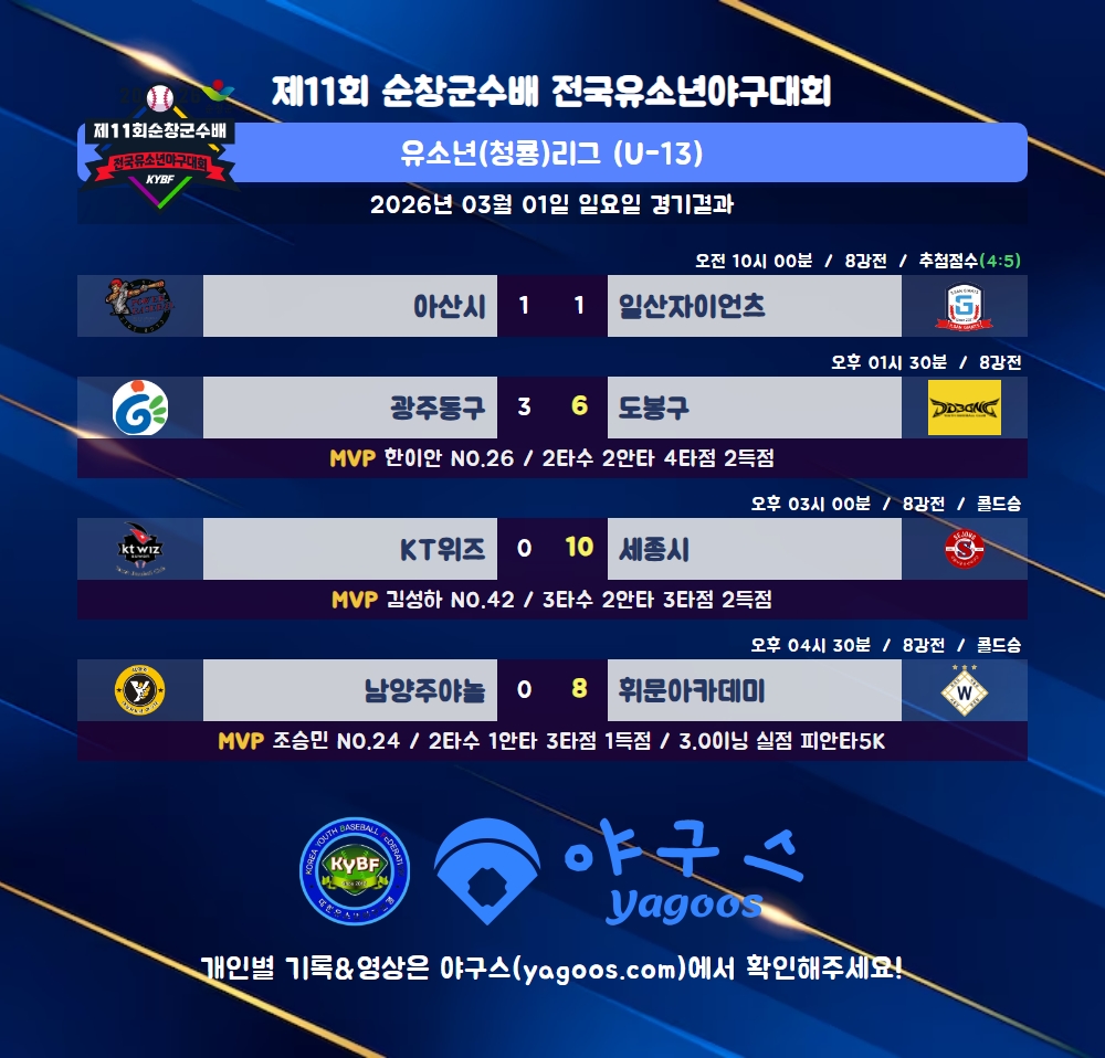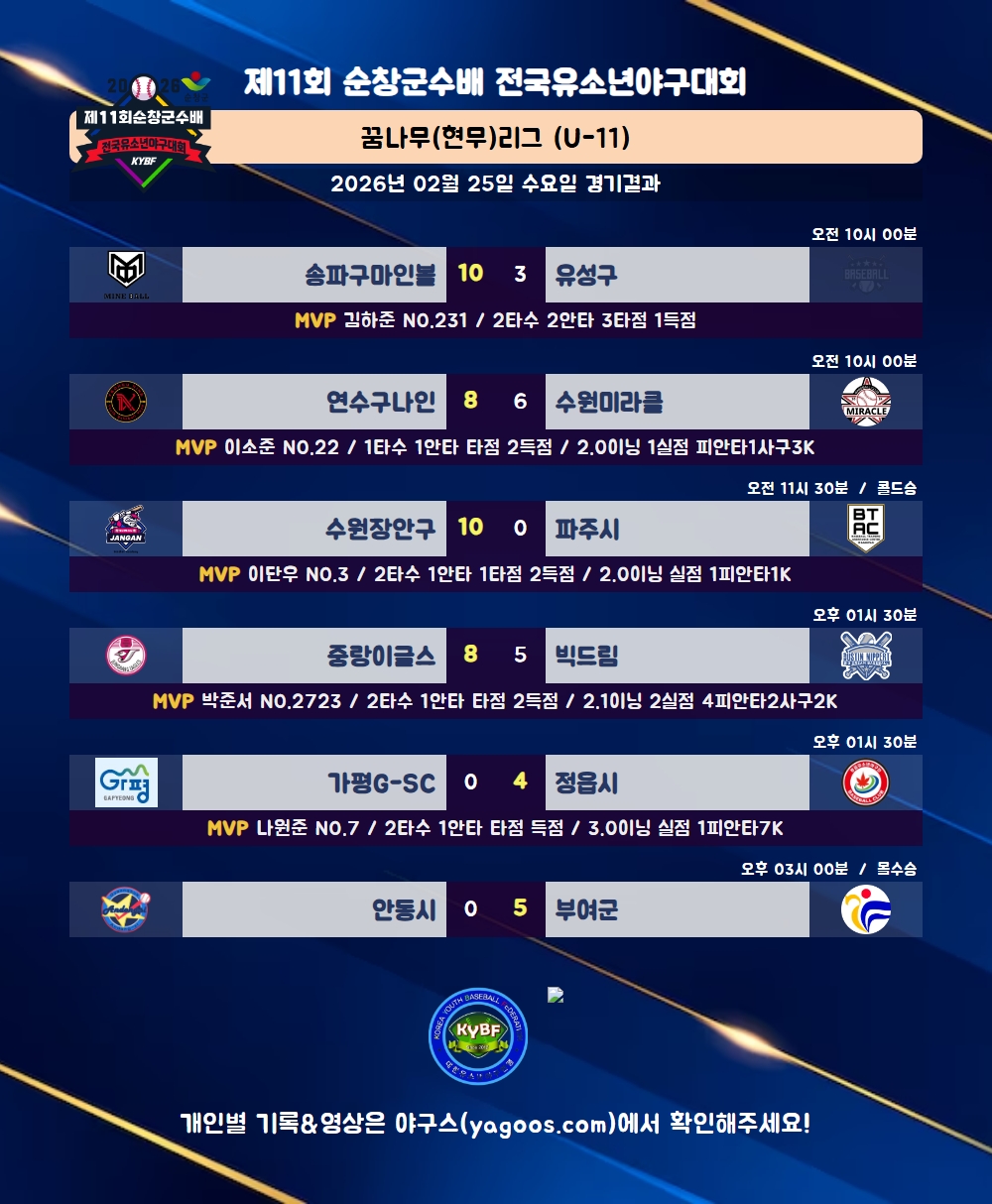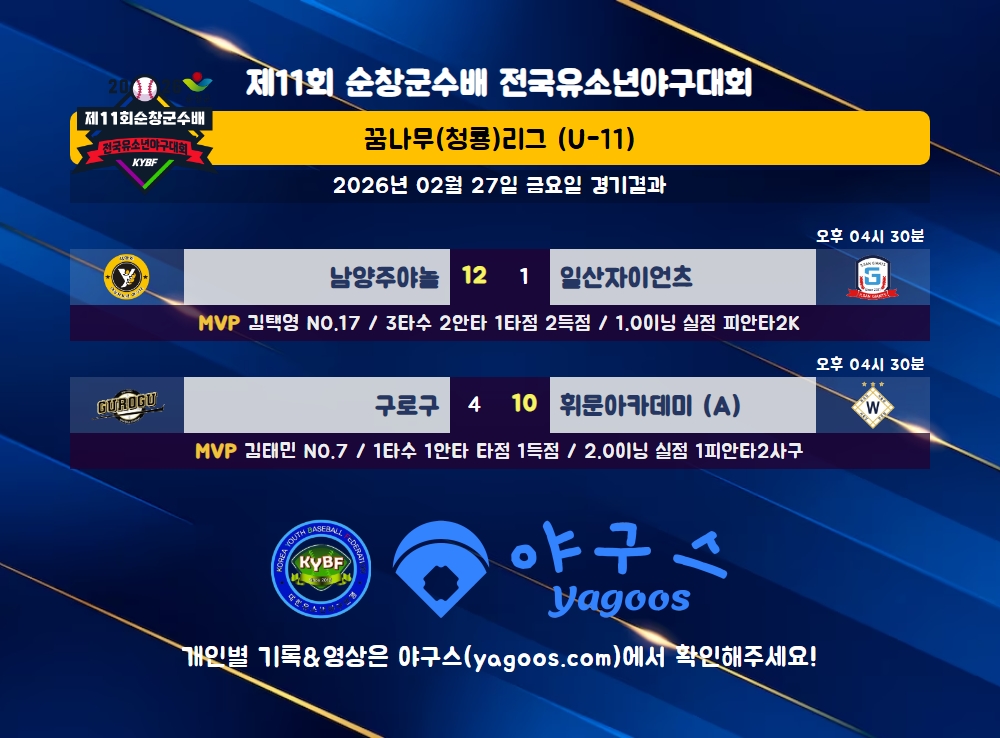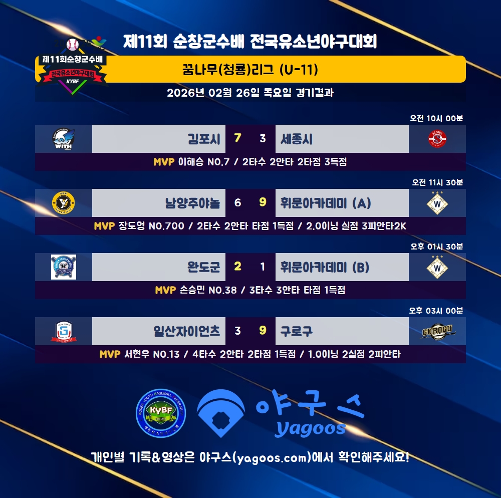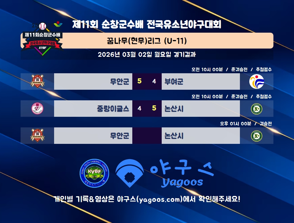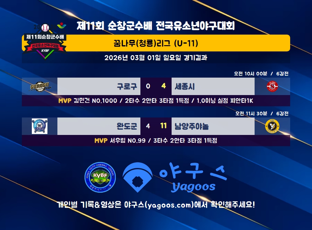[2026] 제11회 순창군수배 전국유소년야구대회