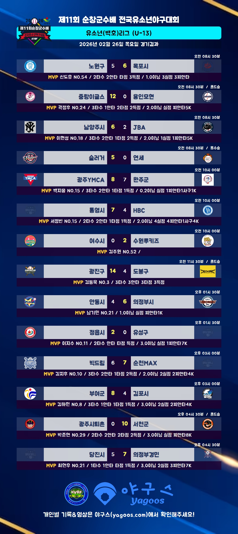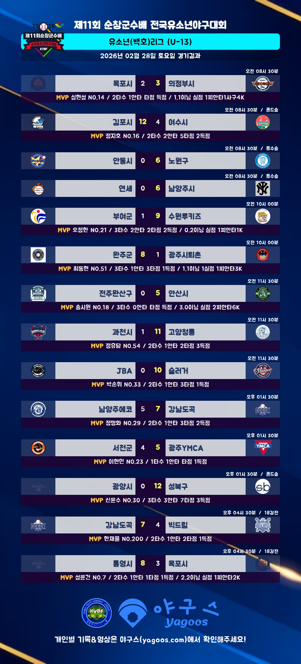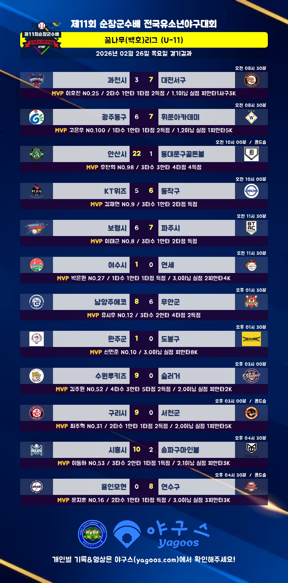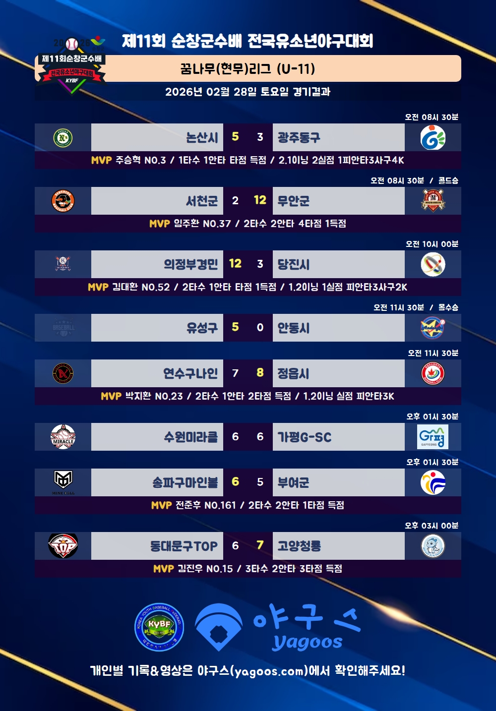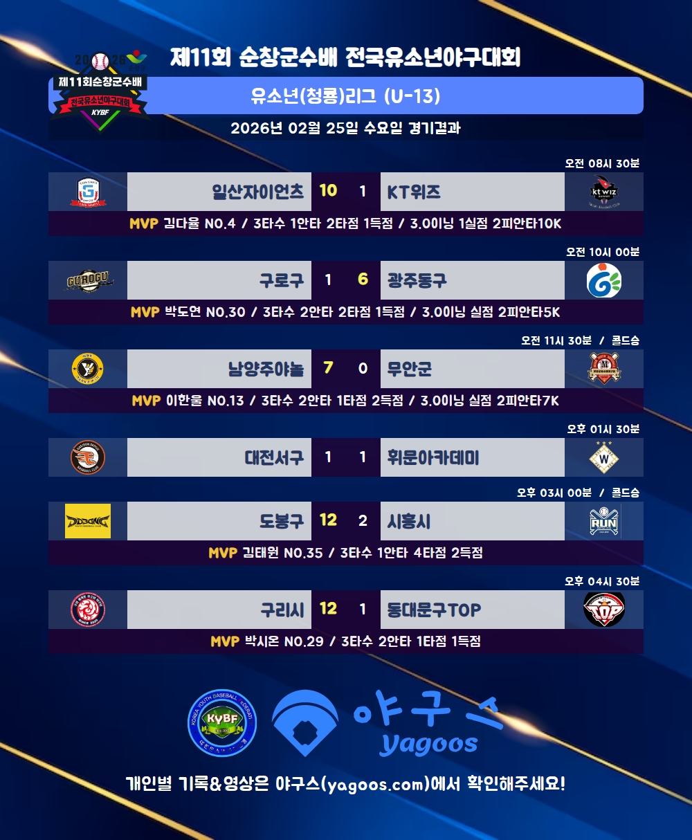 [2026] 제11회 순창군수배 전국유소년야구대회