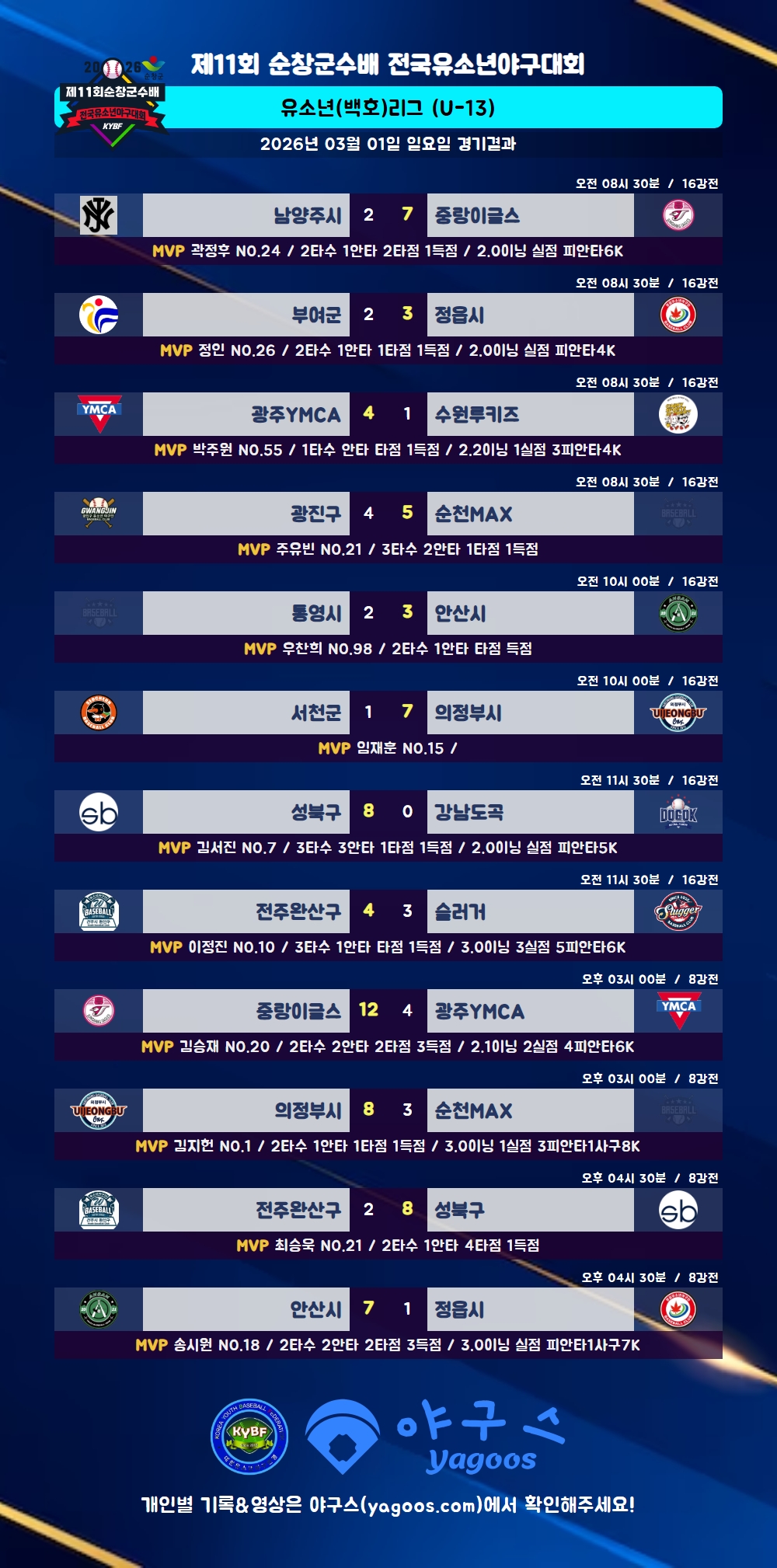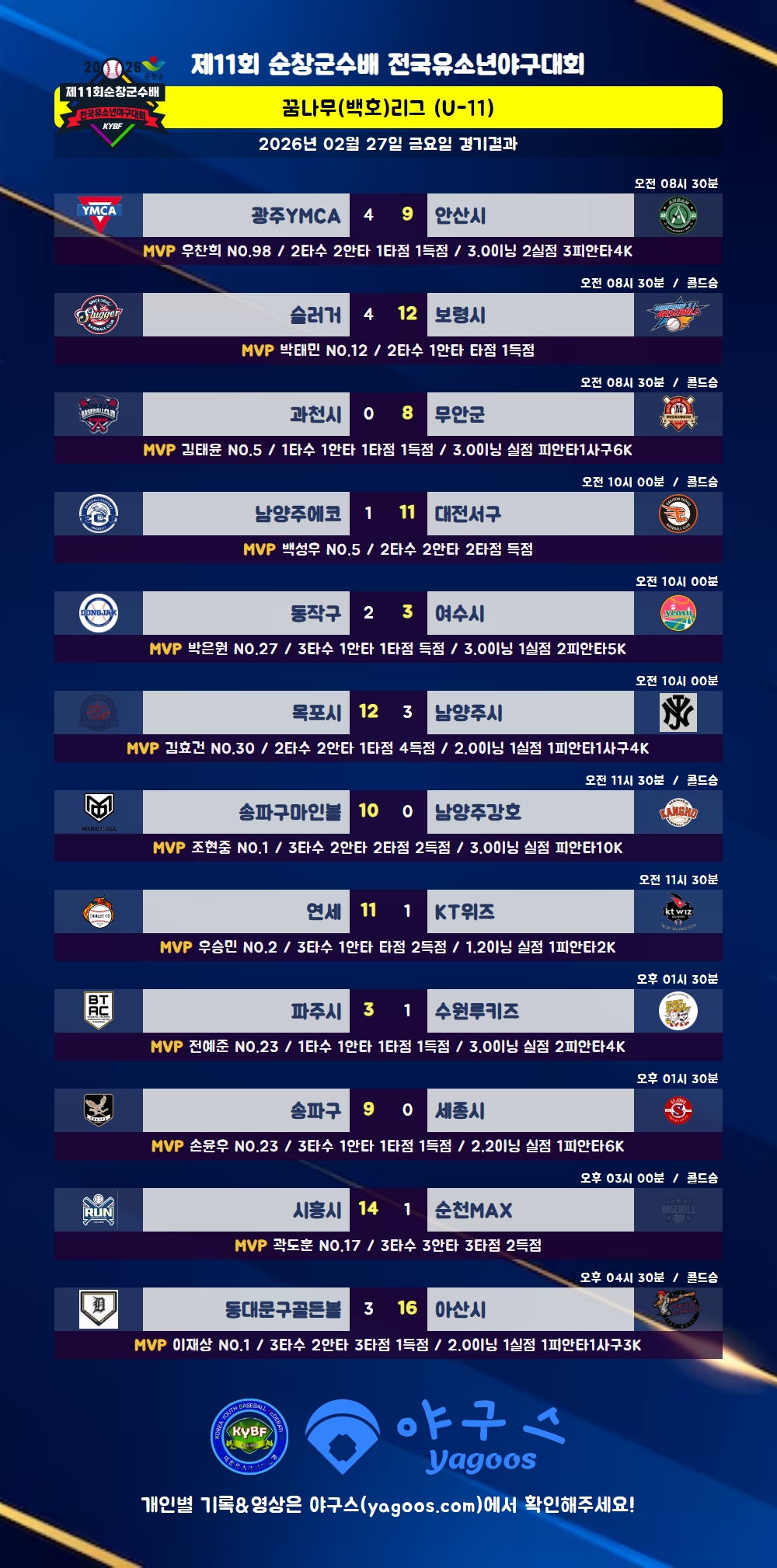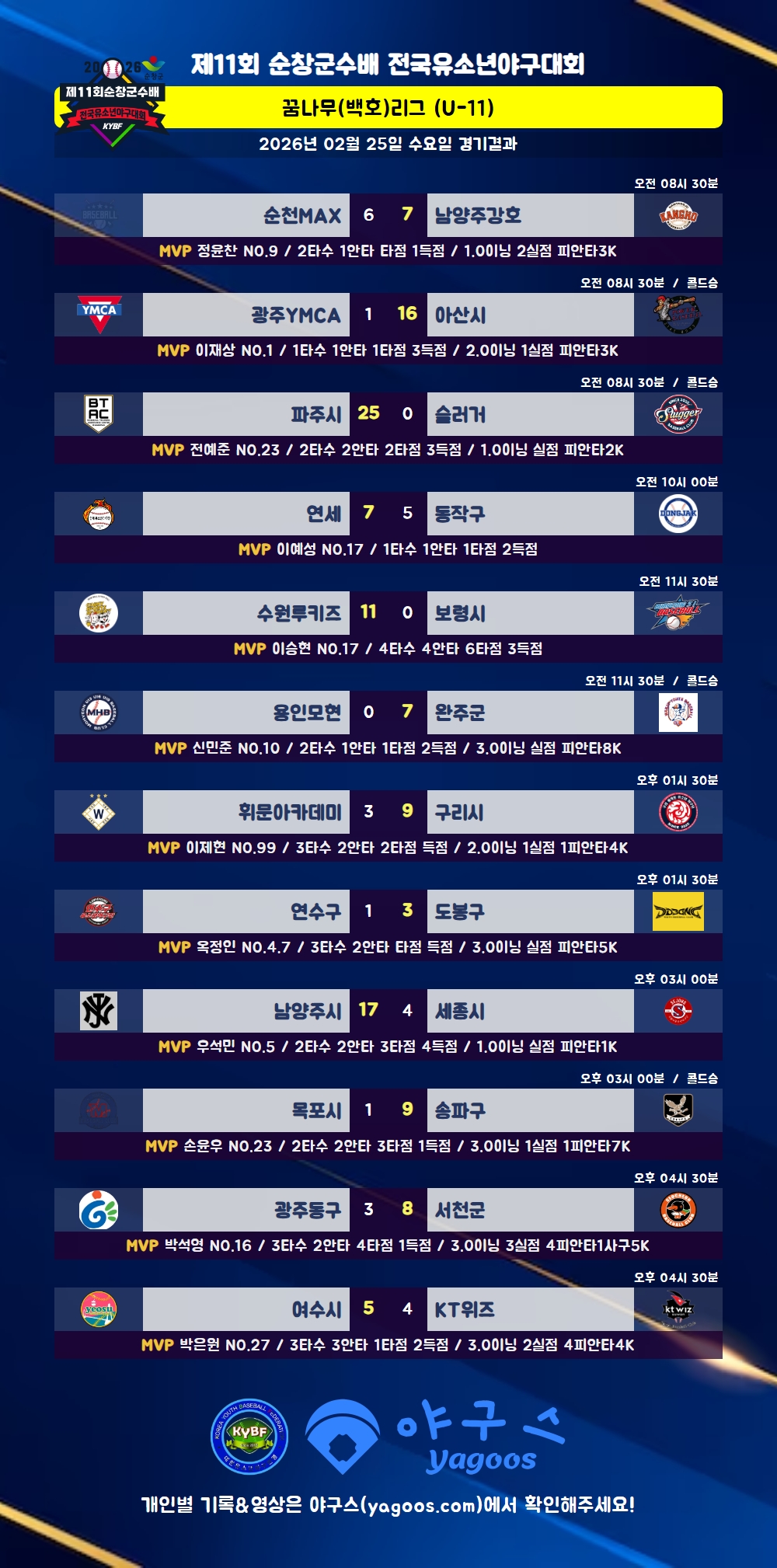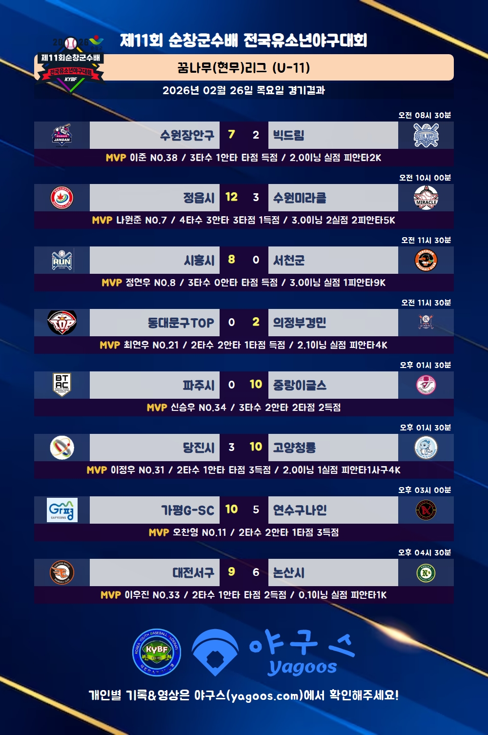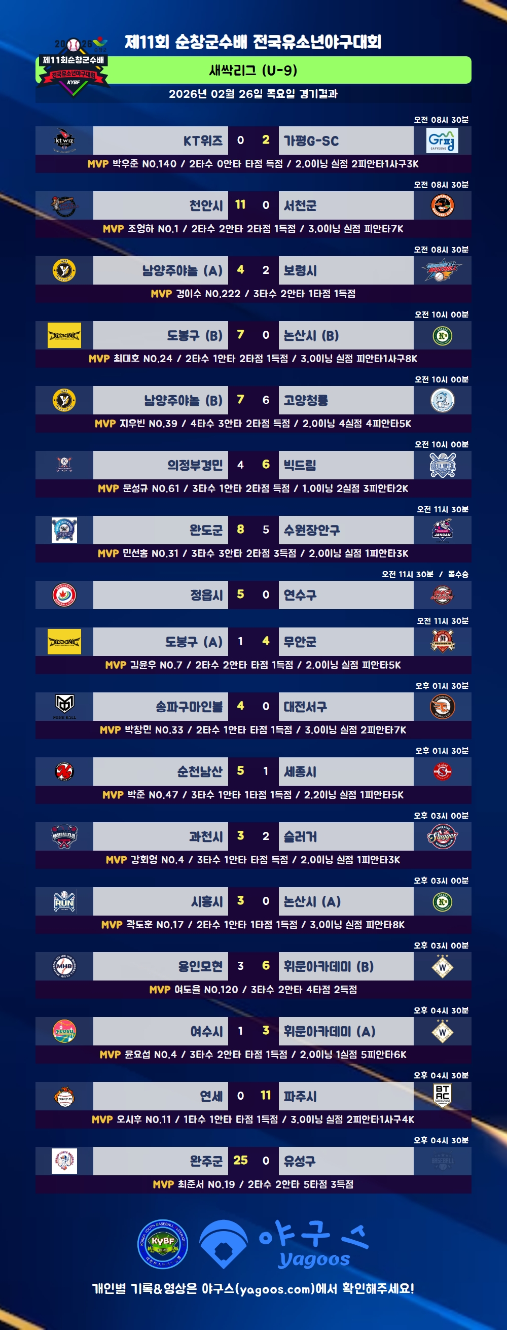 [2026] 제11회 순창군수배 전국유소년야구대회