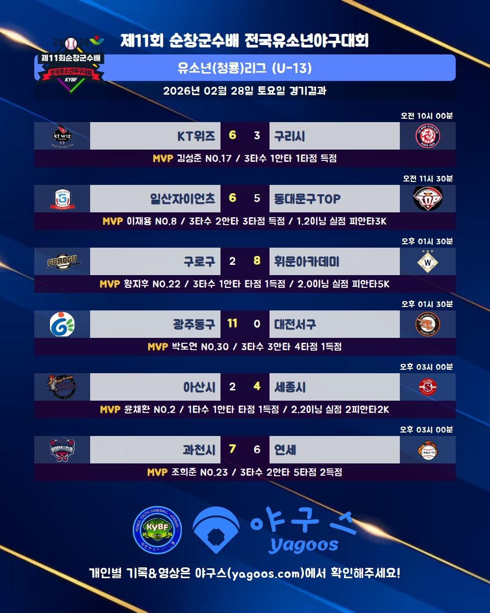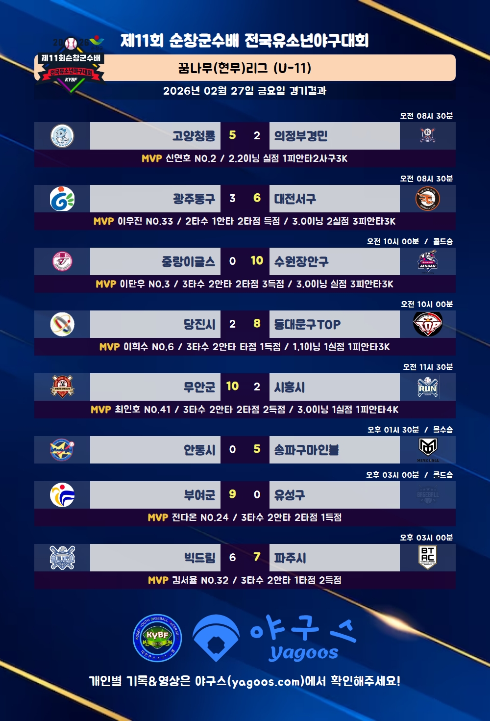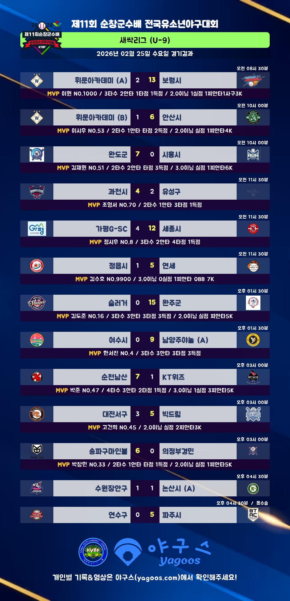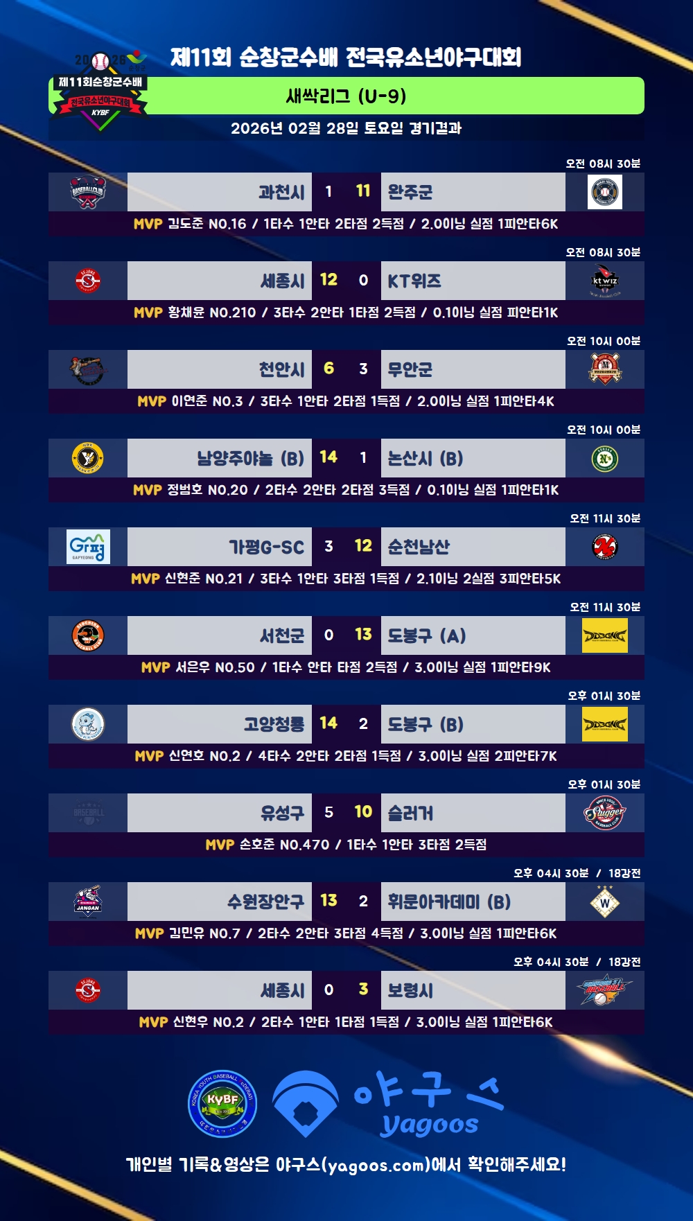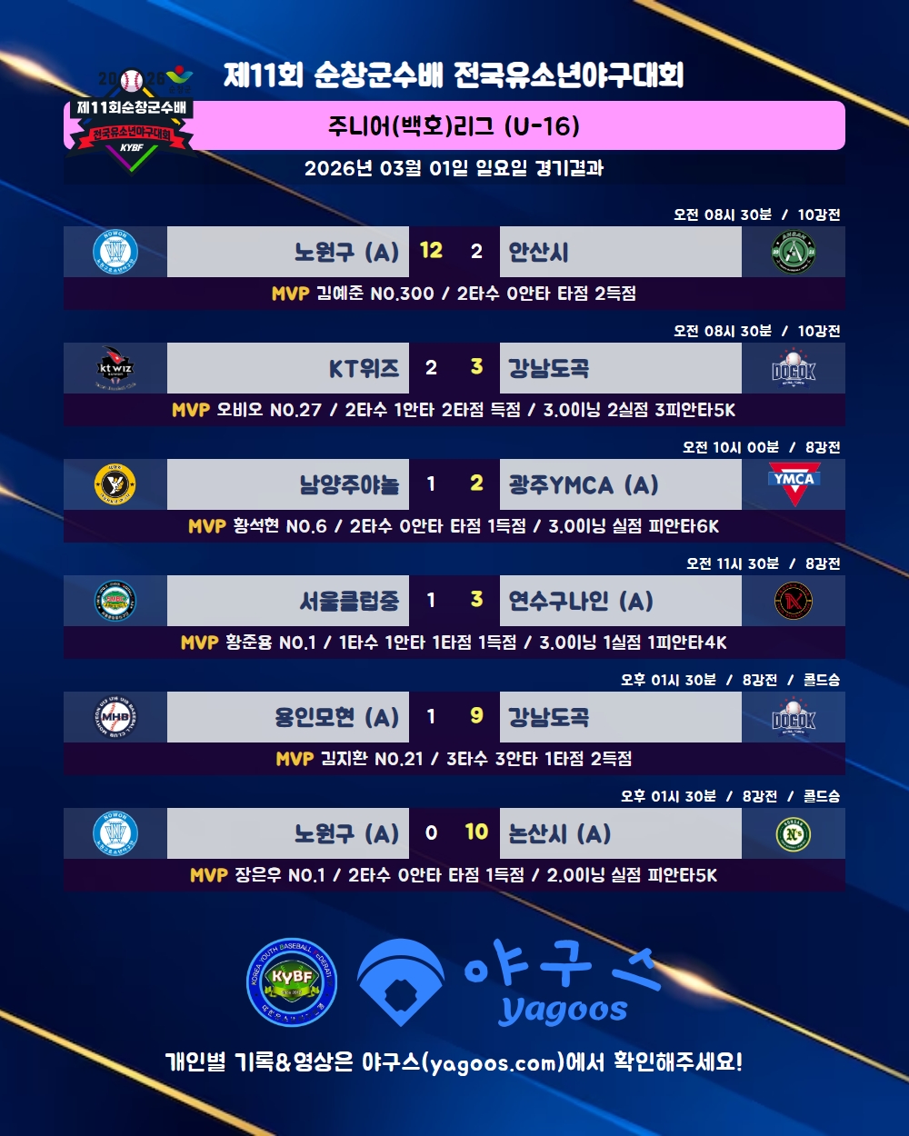 [2026] 제11회 순창군수배 전국유소년야구대회