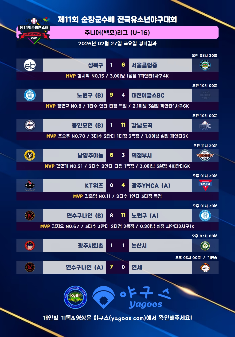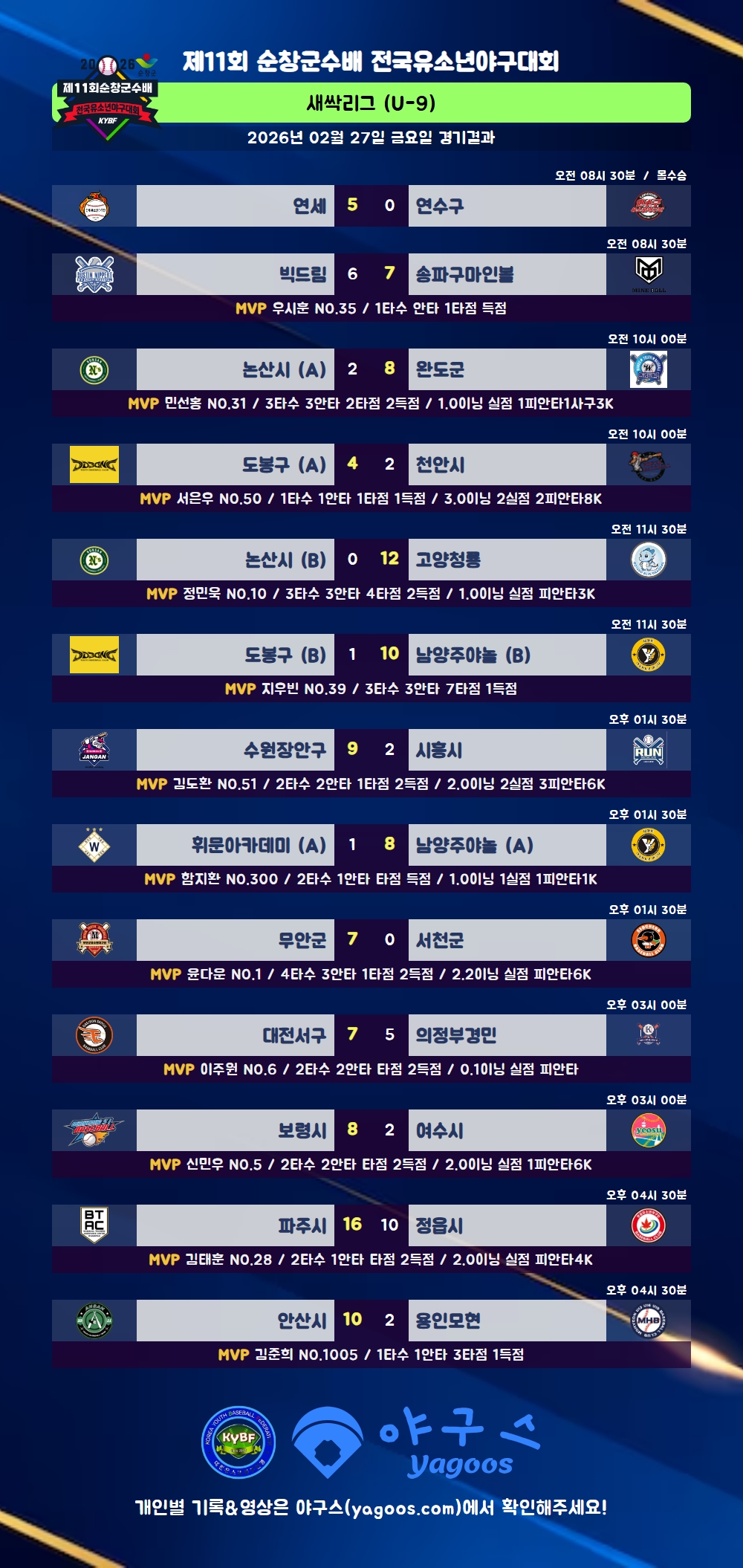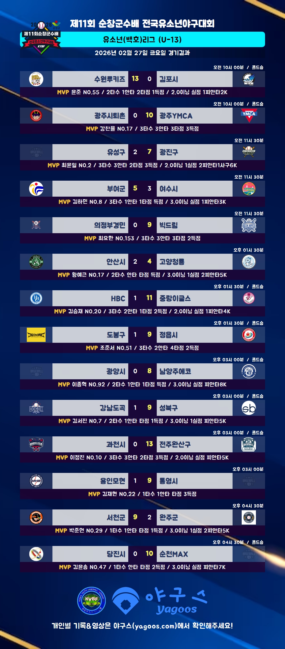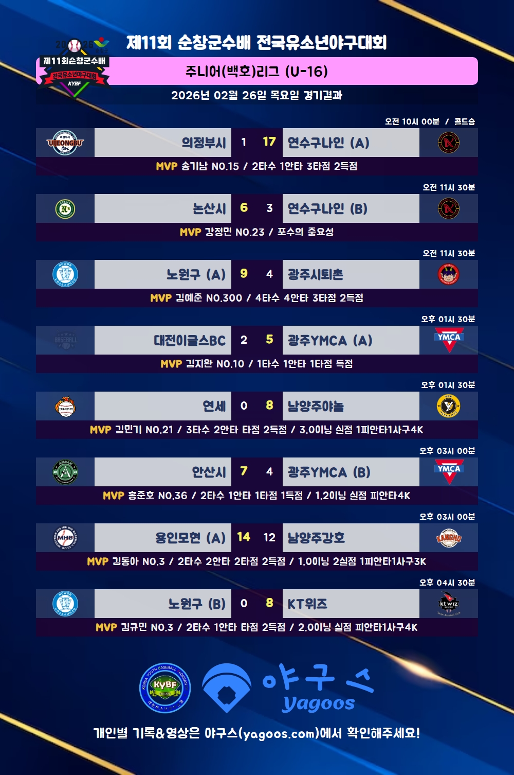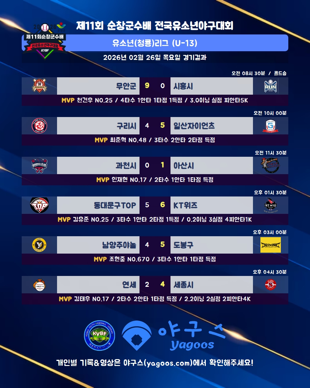 [2026] 제11회 순창군수배 전국유소년야구대회