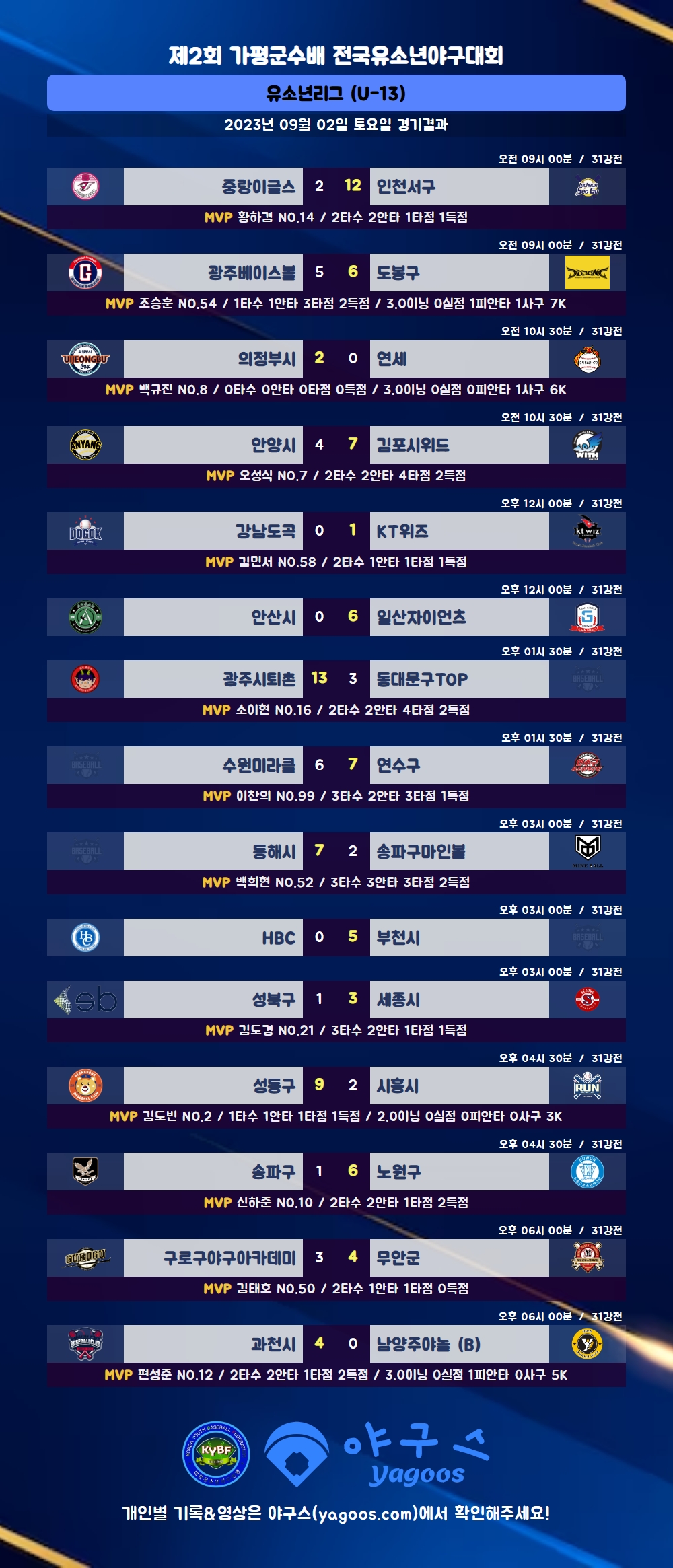 [2023] 제2회 가평군수배 전국유소년야구대회