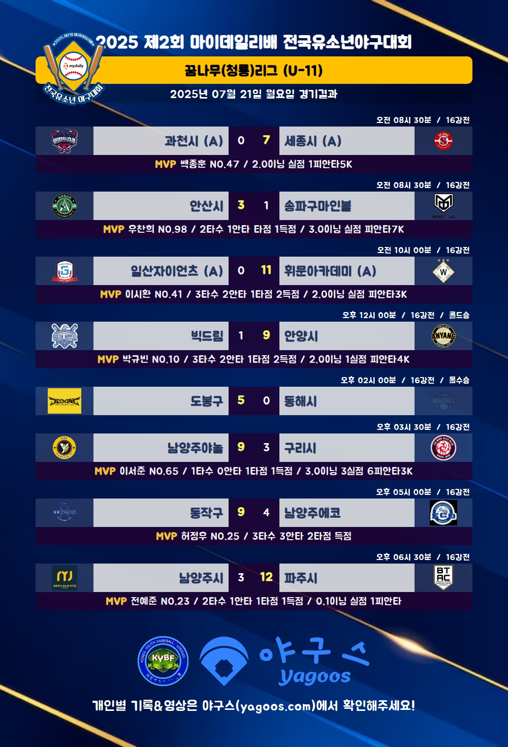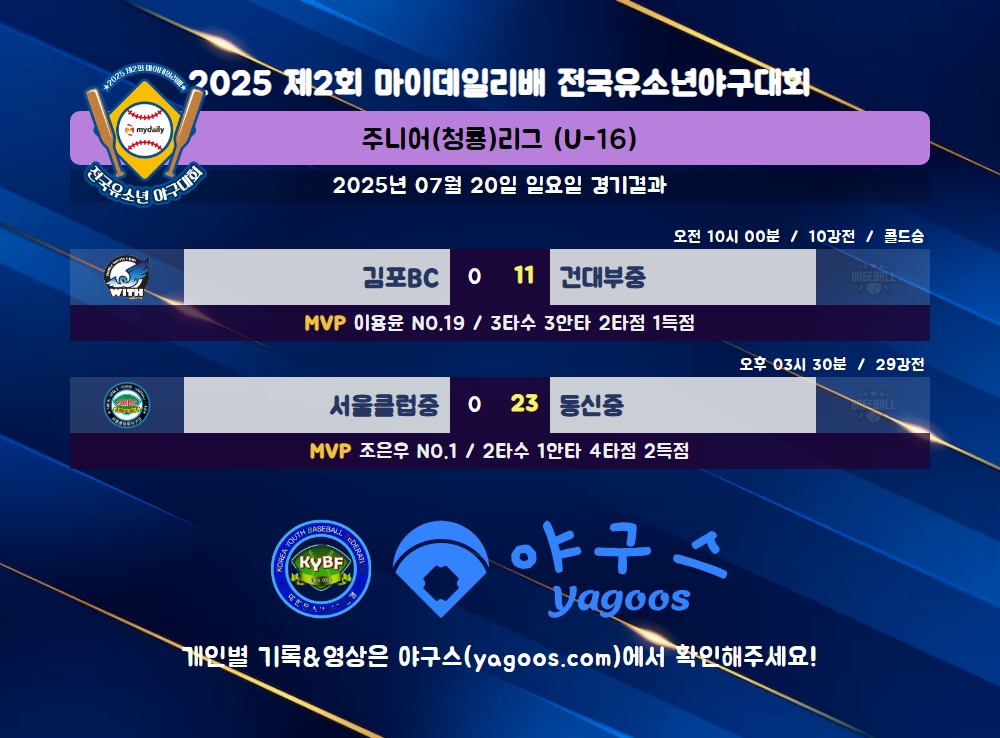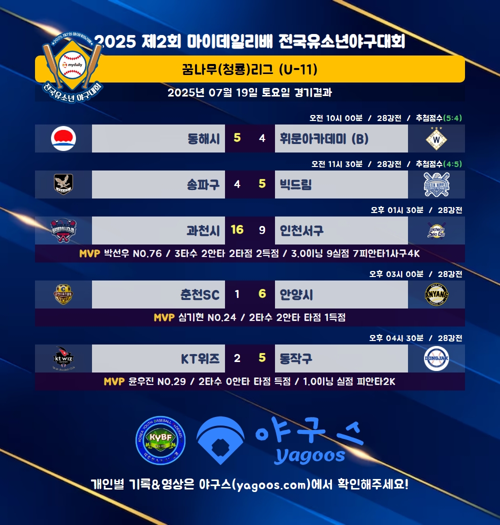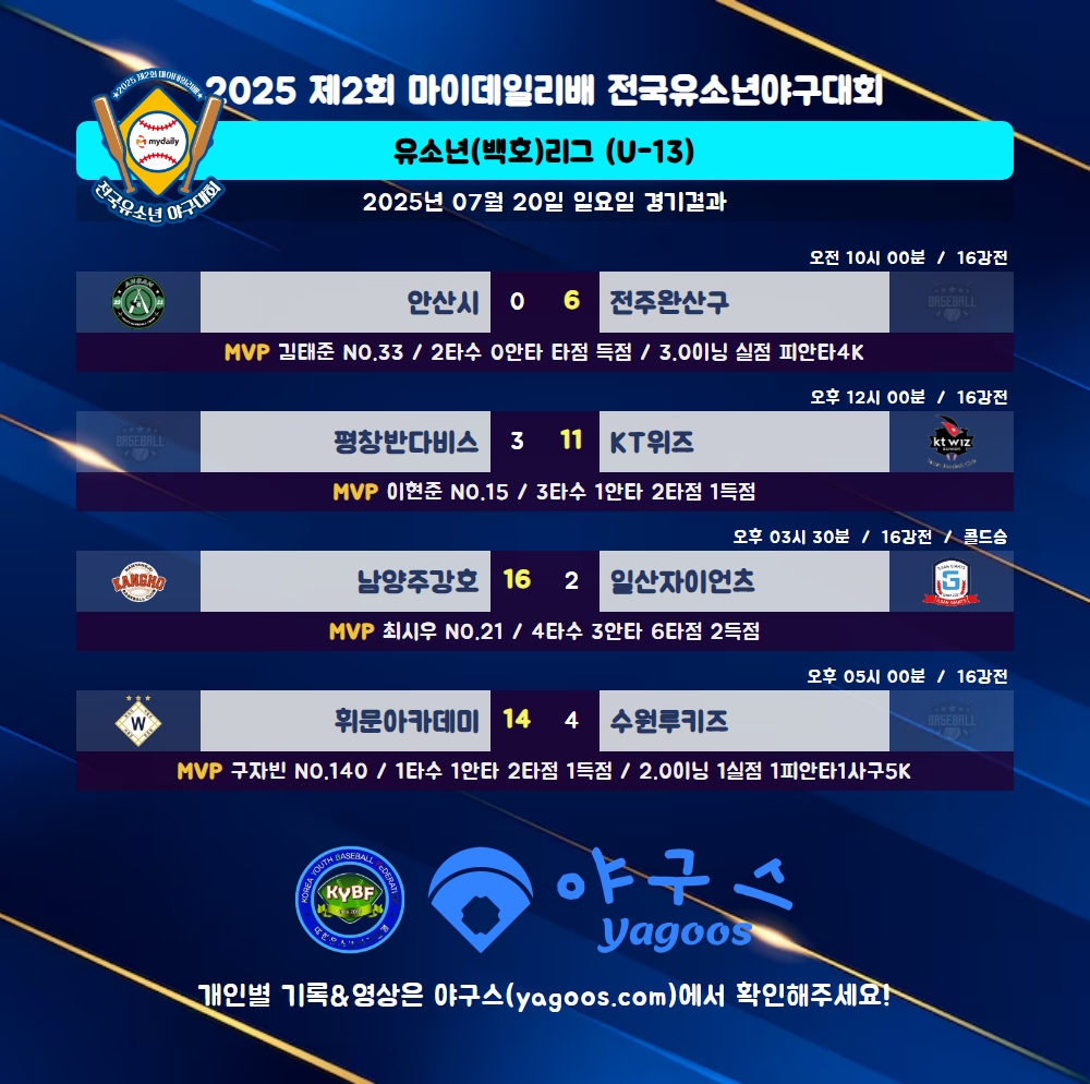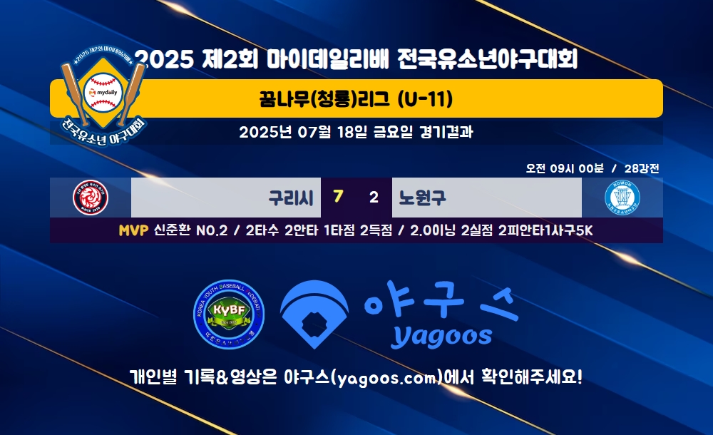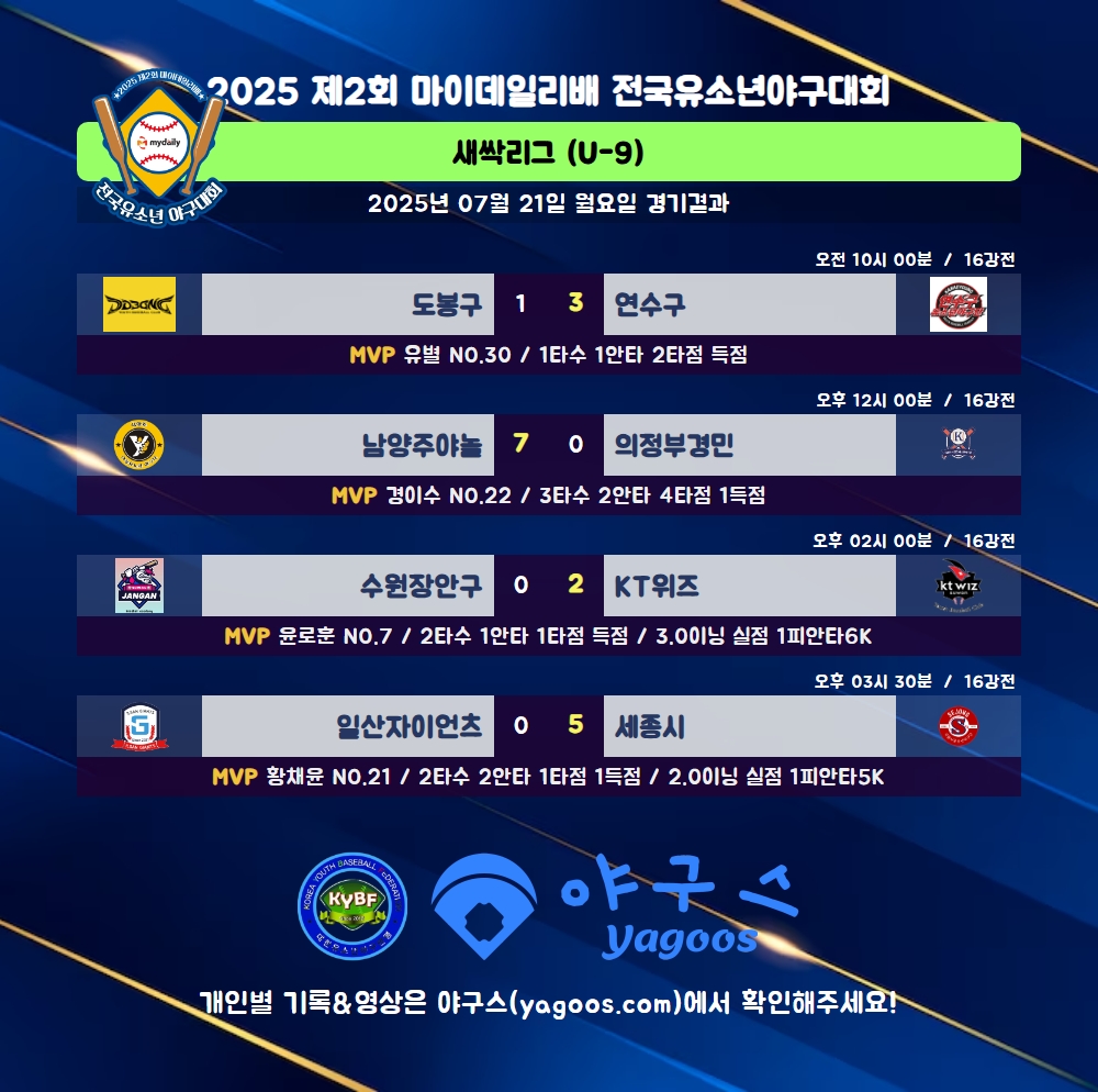 [2025] 2025 제2회 마이데일리배 전국유소년야구대회