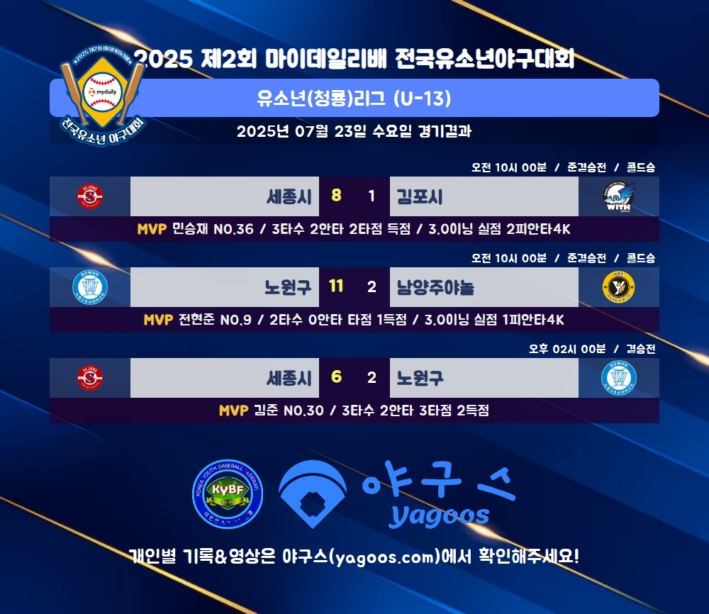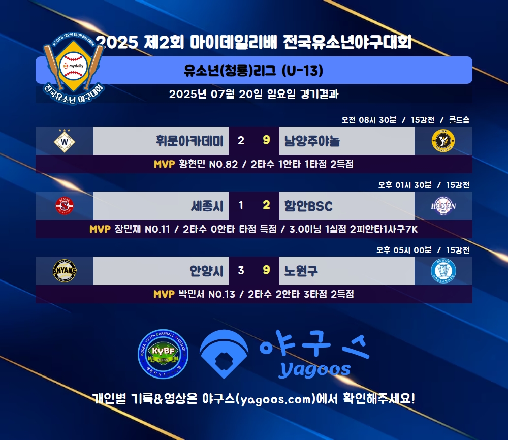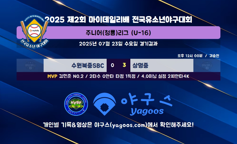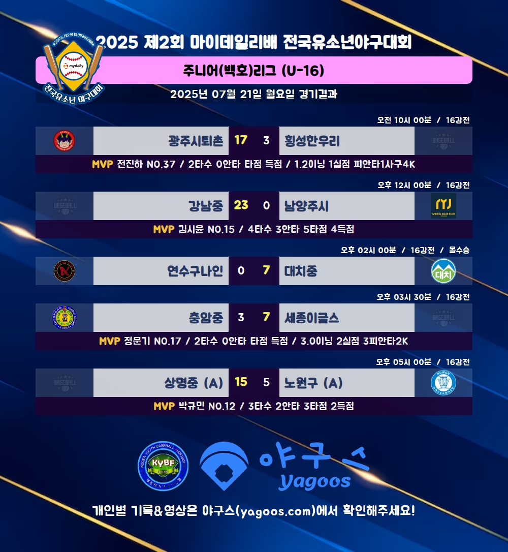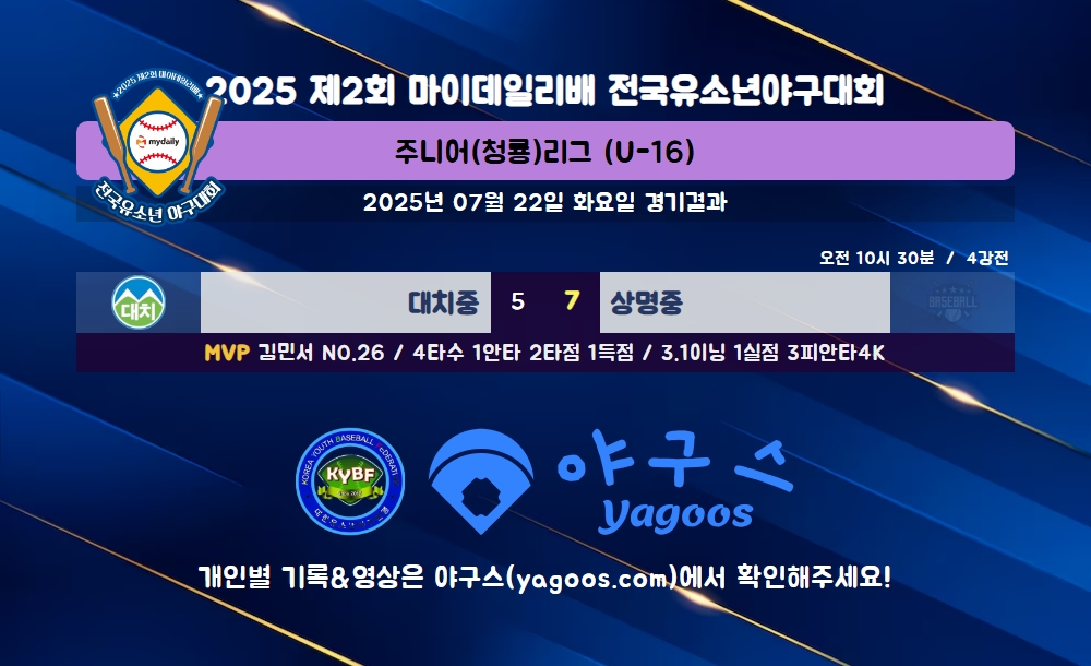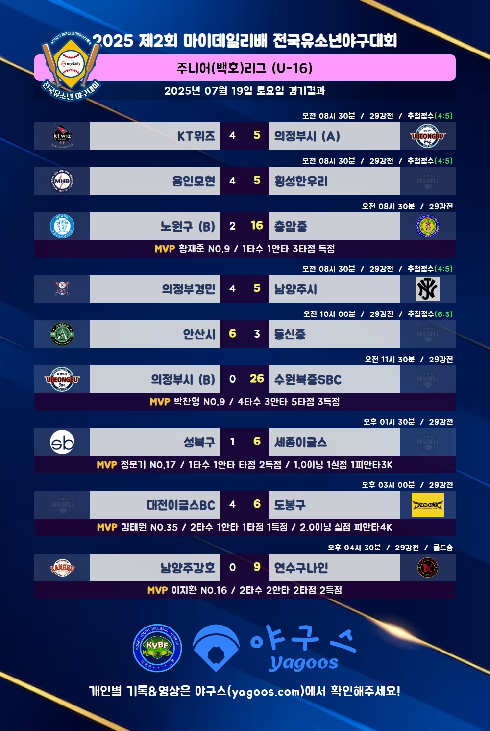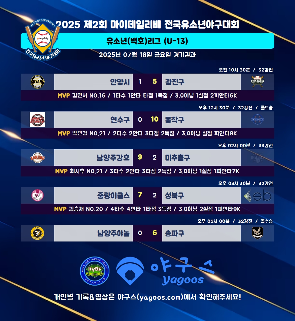 [2025] 2025 제2회 마이데일리배 전국유소년야구대회