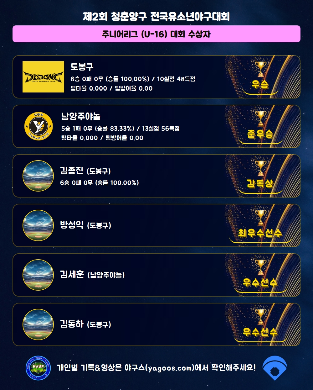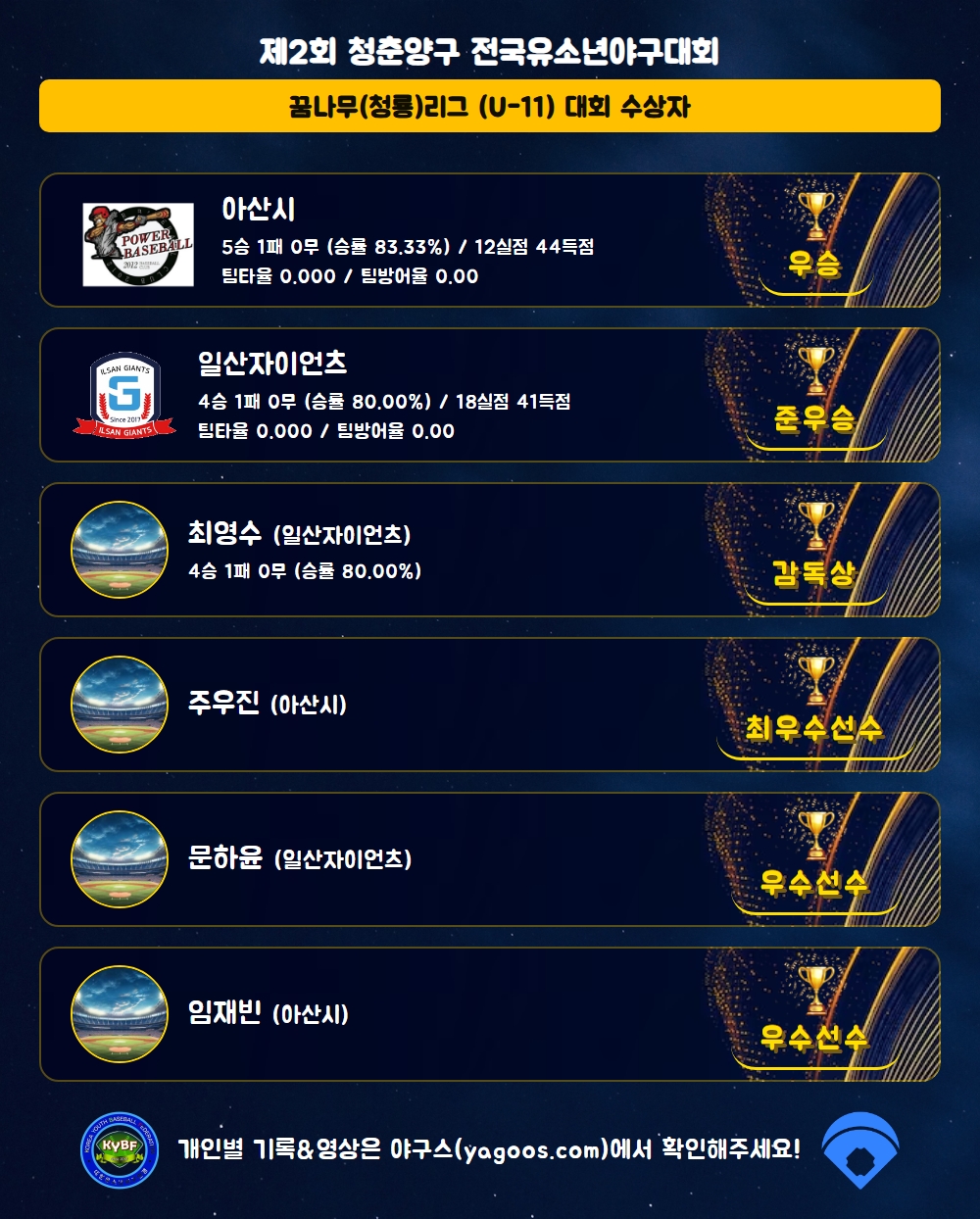 [2025] 2025 제2회 마이데일리배 전국유소년야구대회