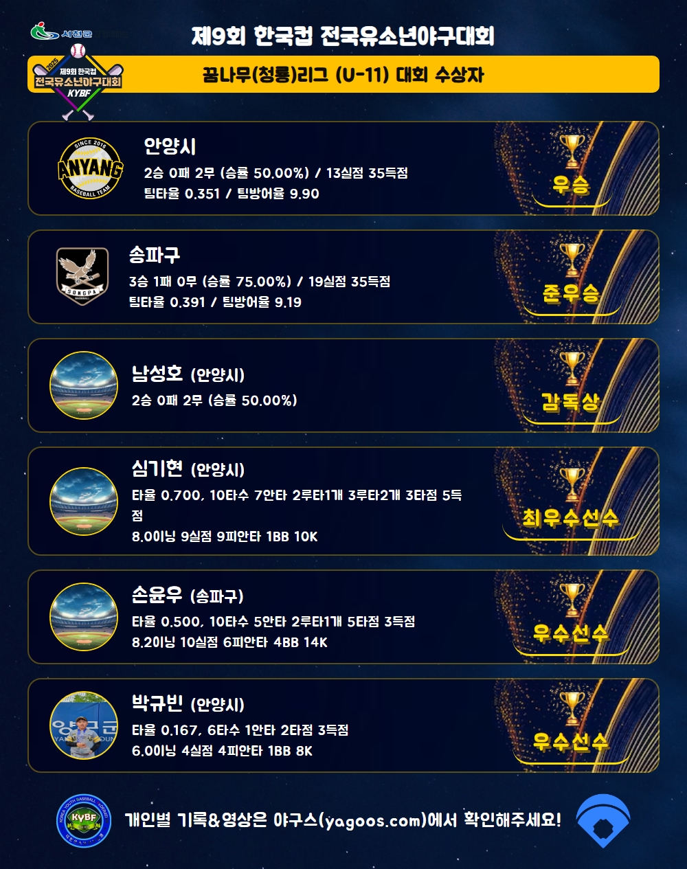 [2025] 2025 제2회 마이데일리배 전국유소년야구대회