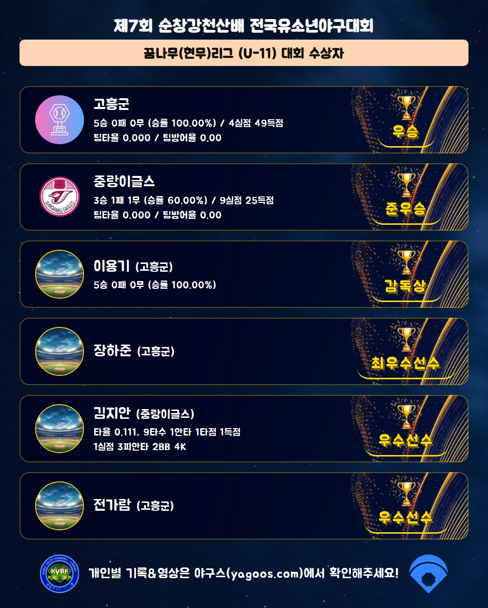 [2025] 2025 제9회 순창강천산배 전국유소년야구대회
