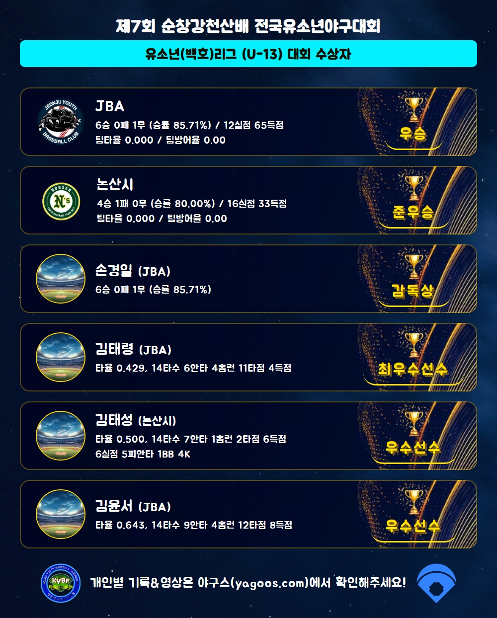 [2023] 제7회 순창강천산배 전국유소년야구대회