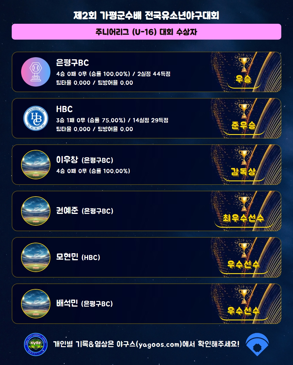 [2025] 2025 제2회 마이데일리배 전국유소년야구대회