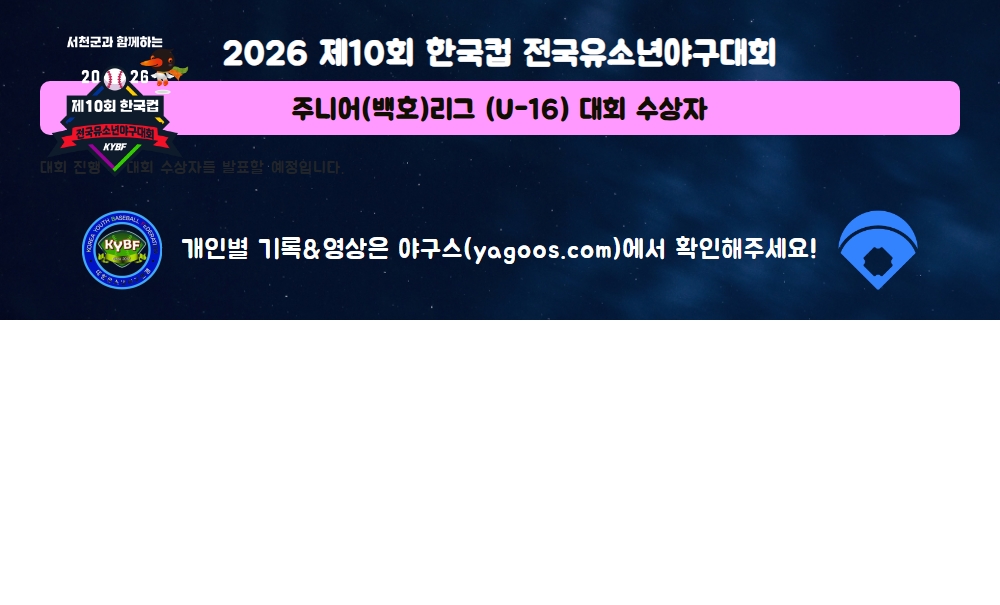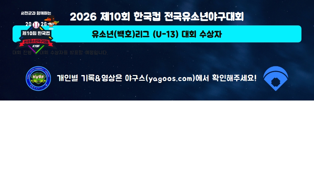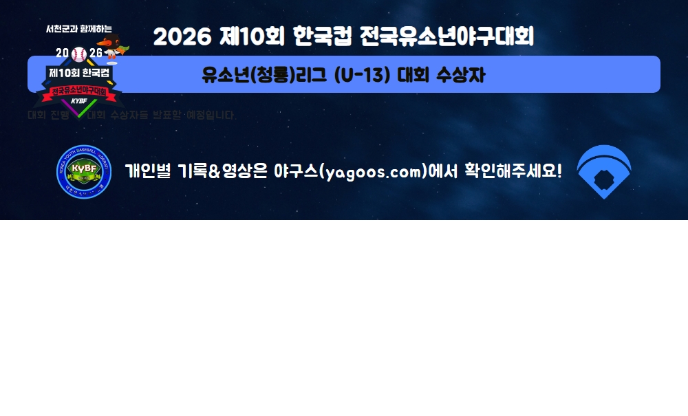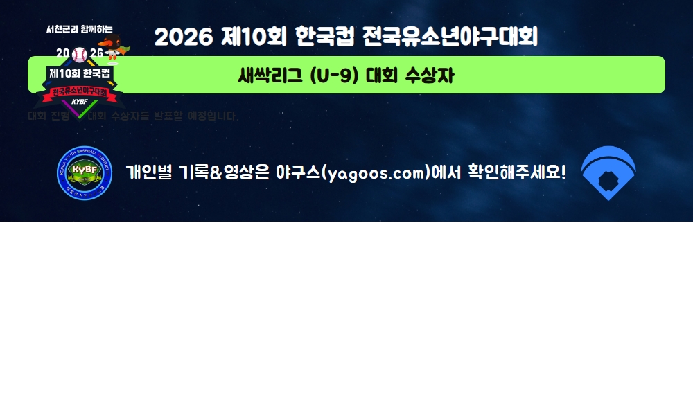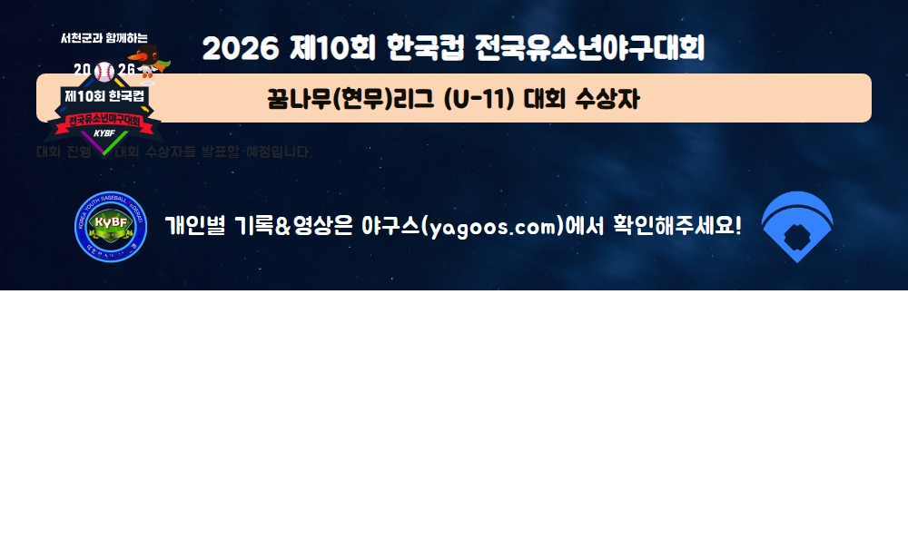 [2026] 2026 제10회 한국컵 전국유소년야구대회