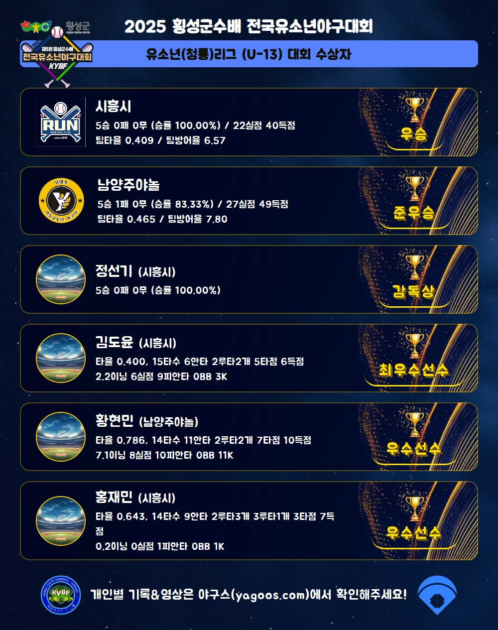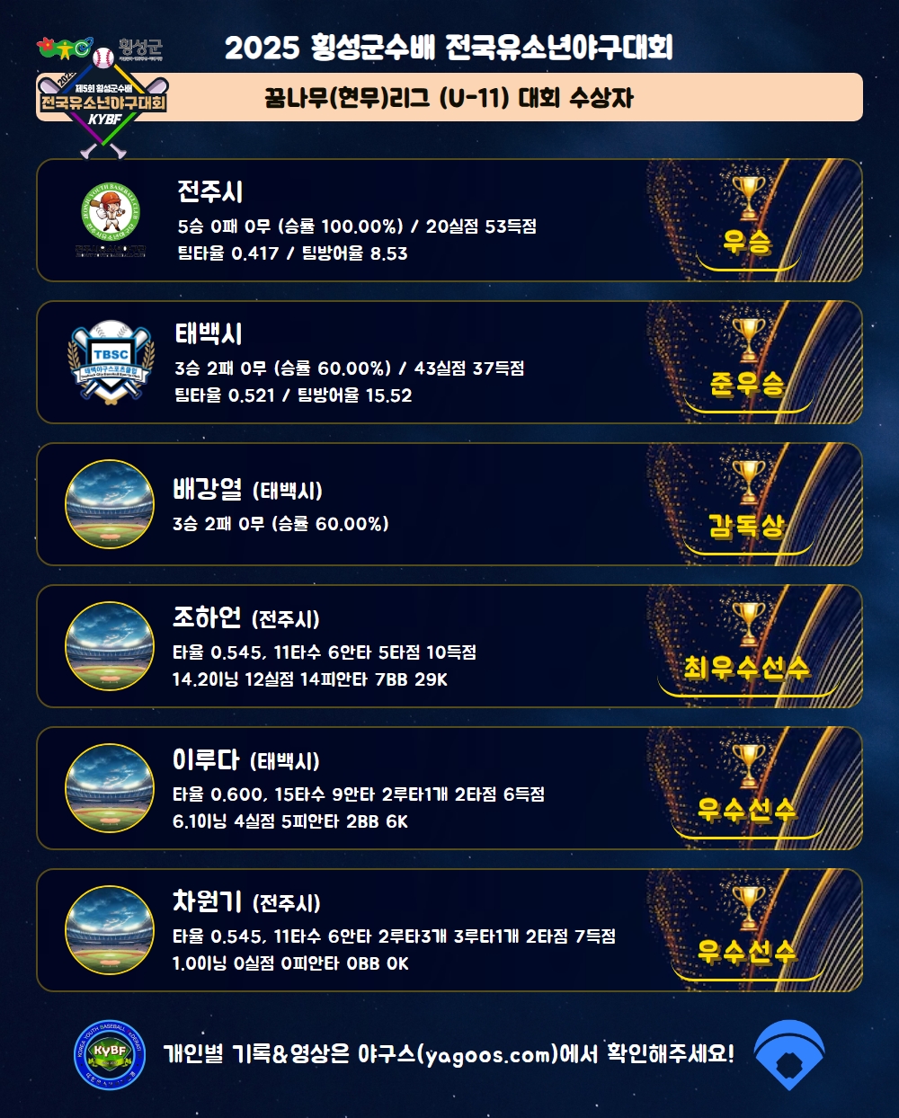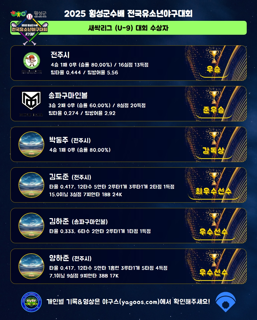 [2025] 2025 횡성한우리배 전국유소년야구대회