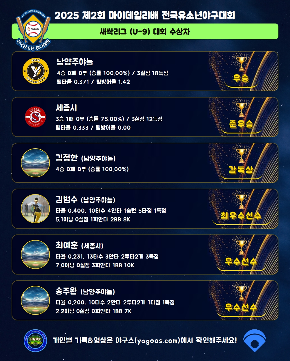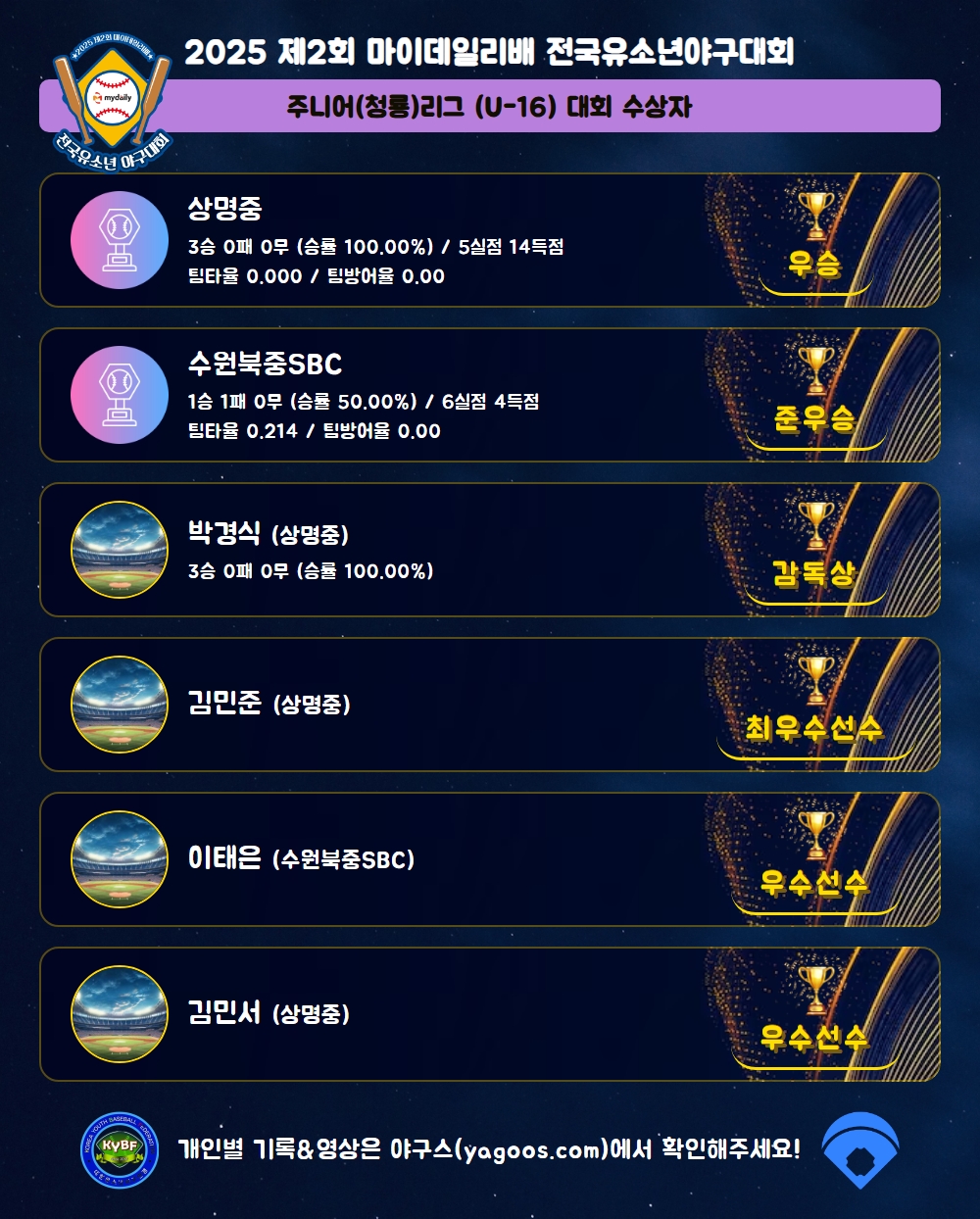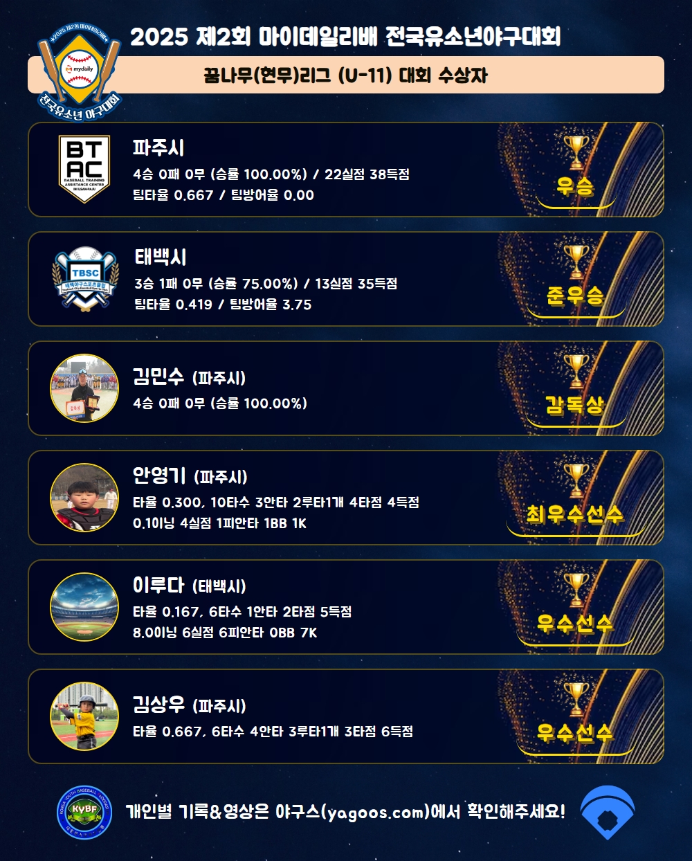 [2025] 2025 제2회 마이데일리배 전국유소년야구대회