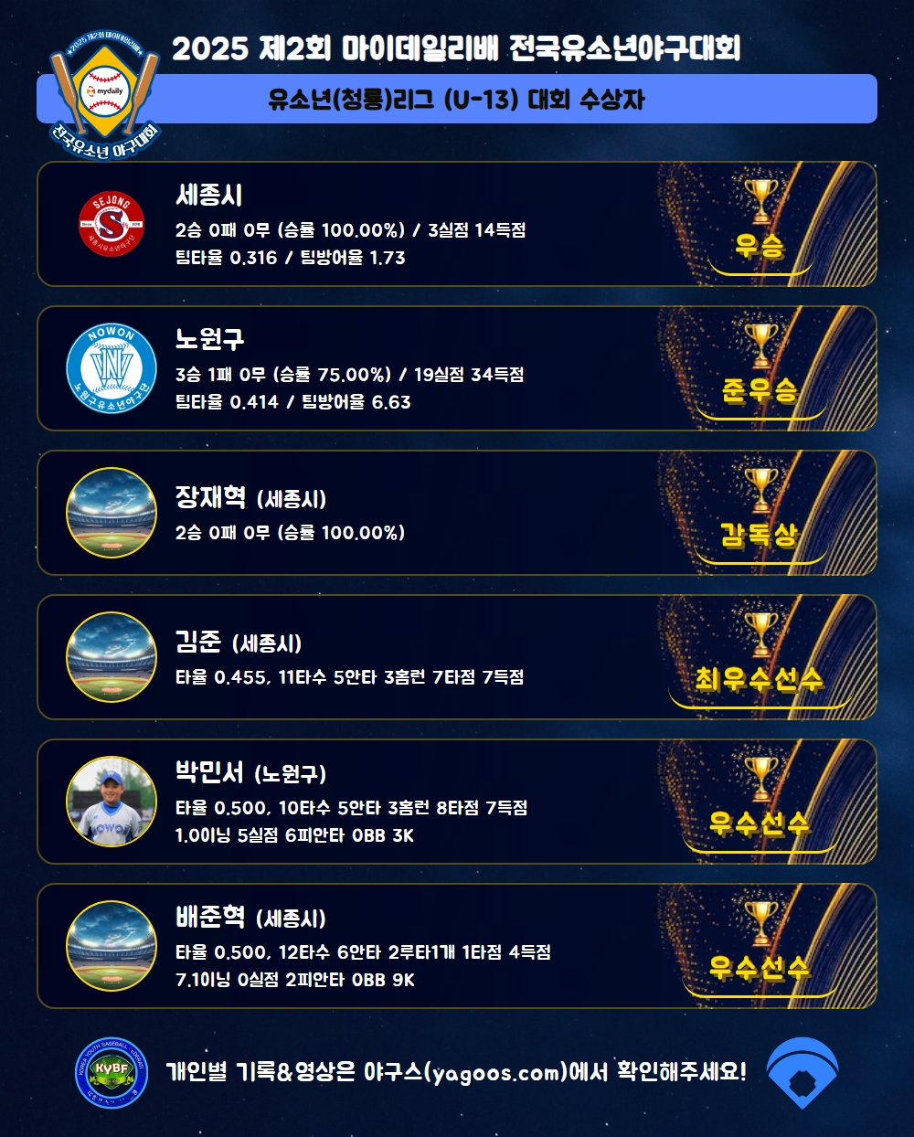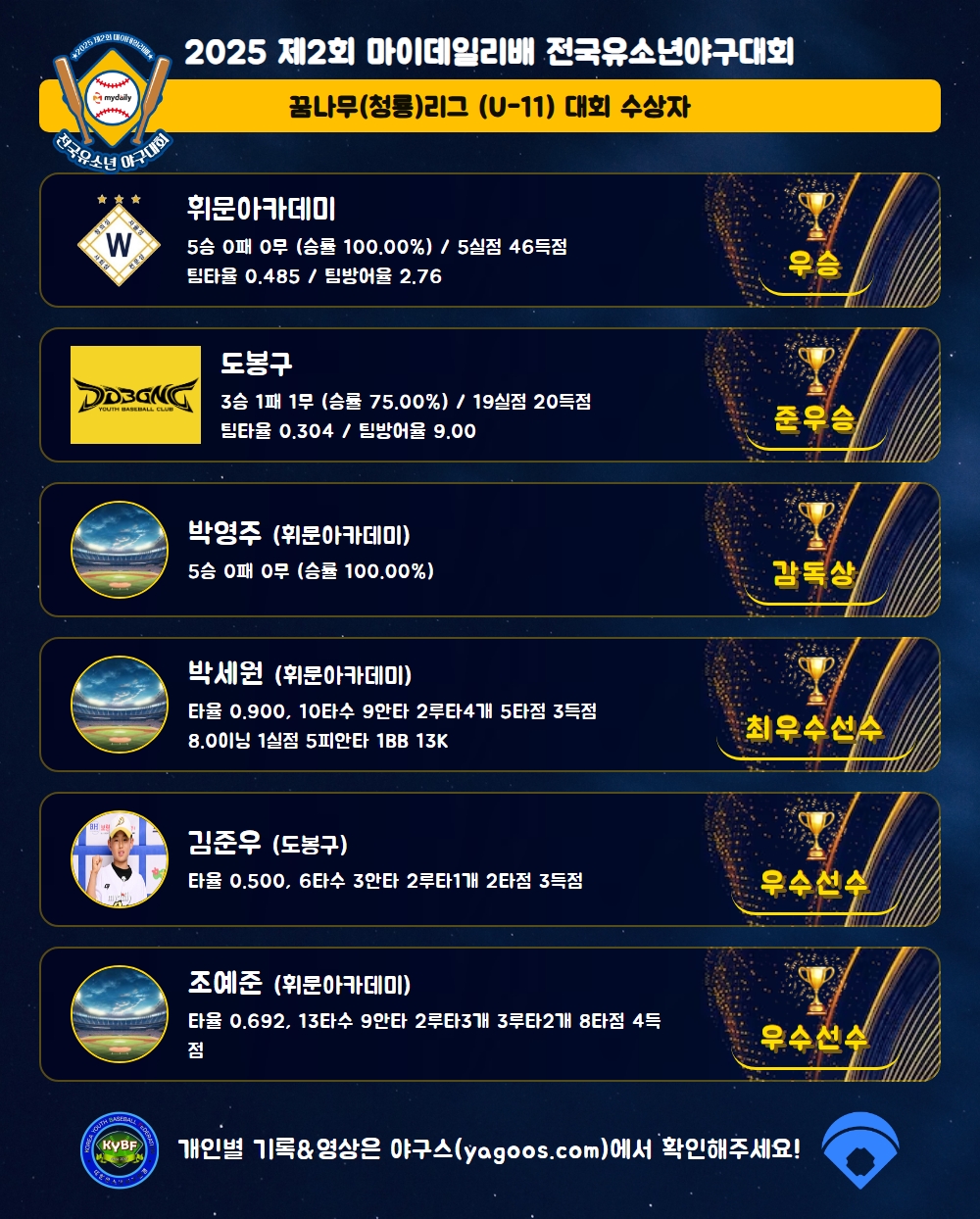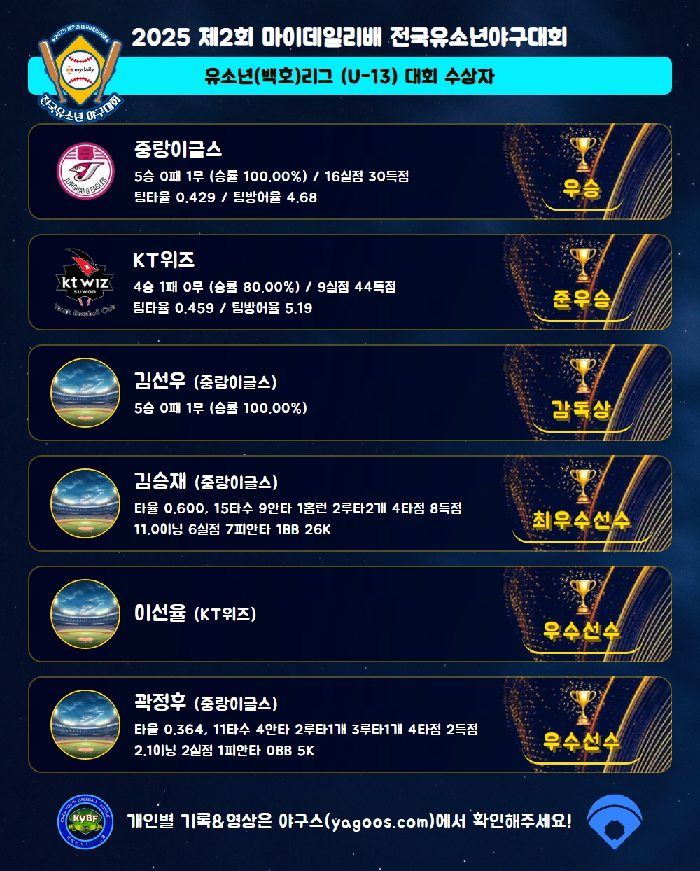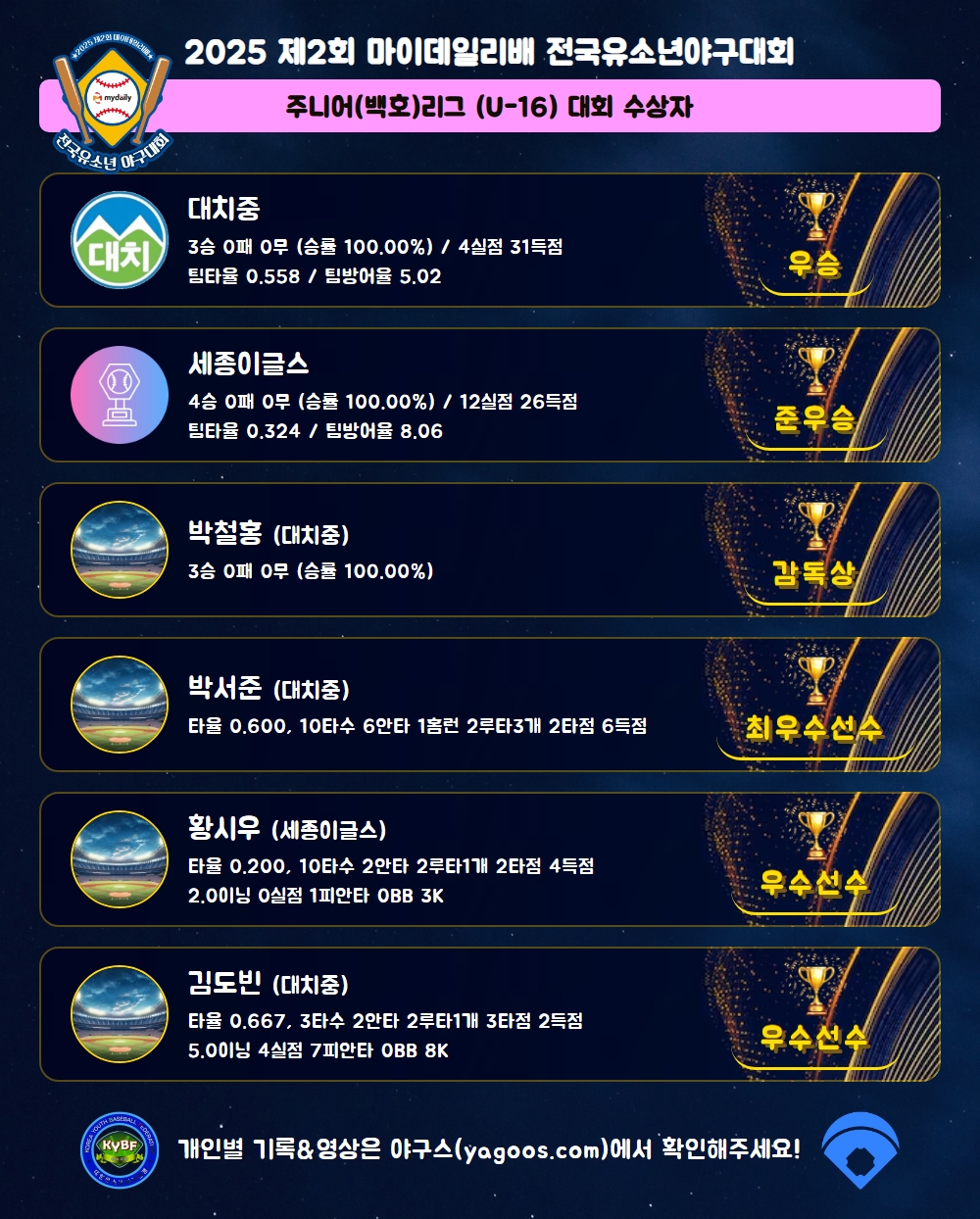[2025] 2025 제2회 마이데일리배 전국유소년야구대회