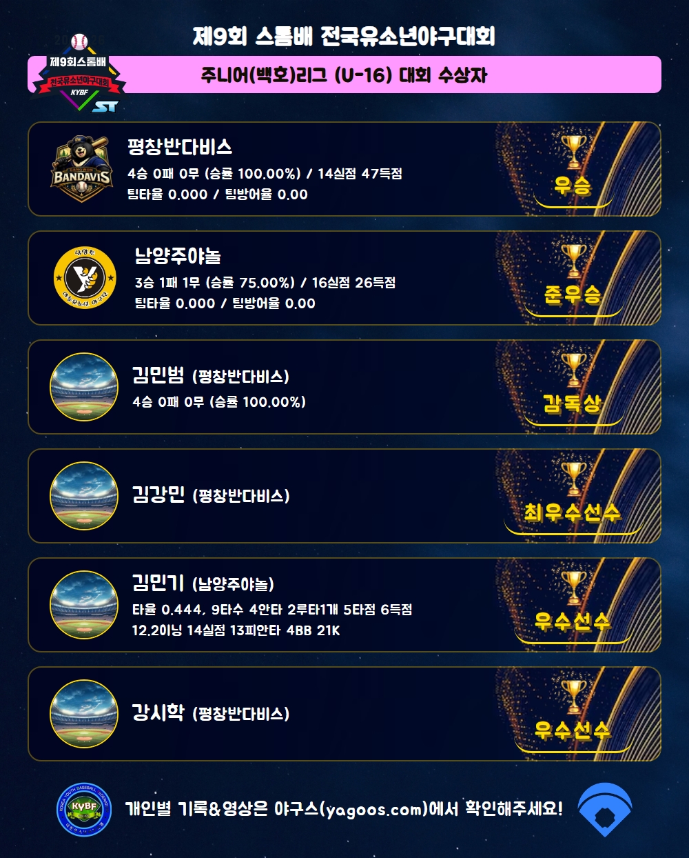[2025] 2025 제2회 마이데일리배 전국유소년야구대회