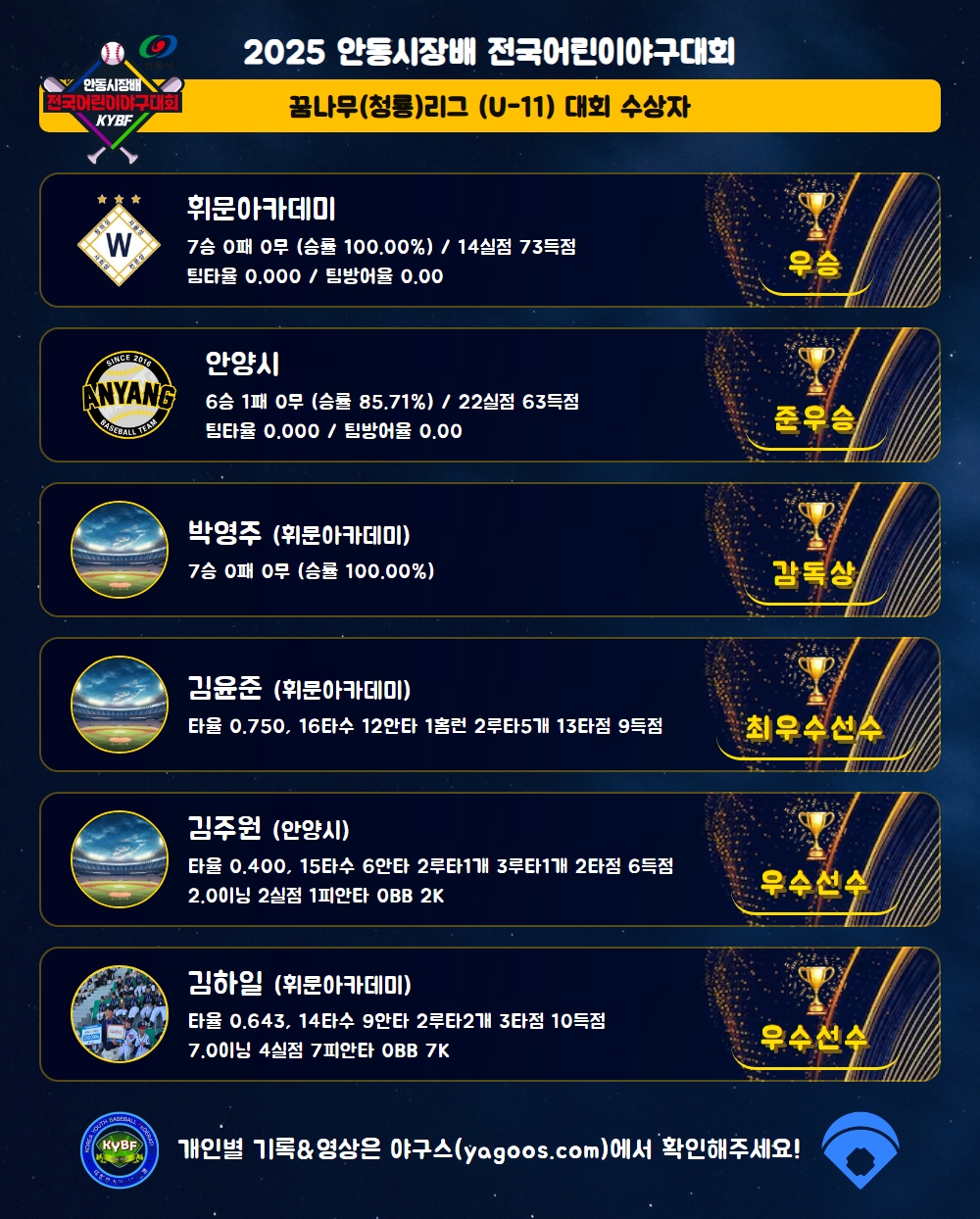 [2025] 2025 제2회 마이데일리배 전국유소년야구대회