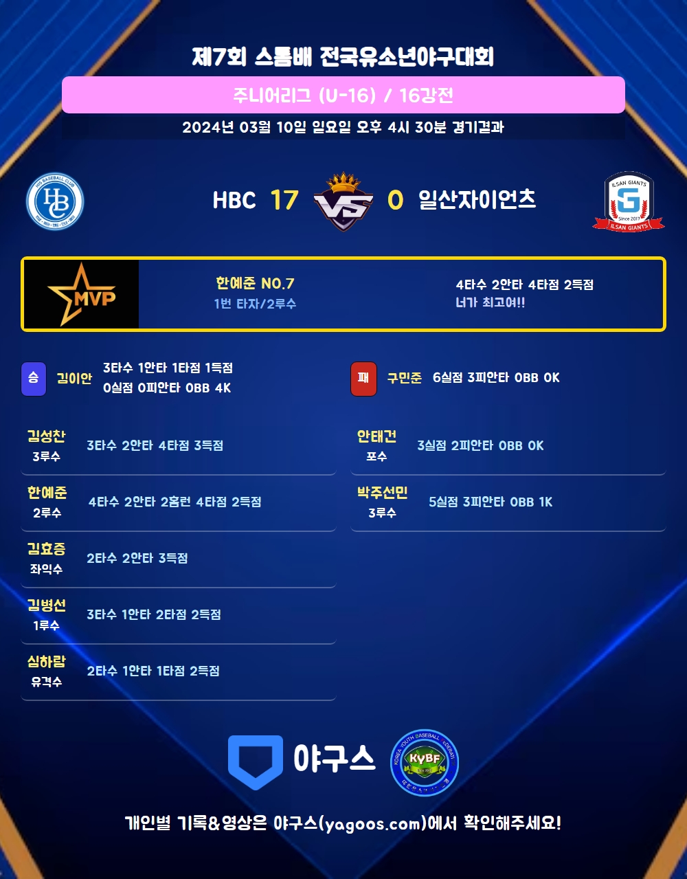 | 홈런 | 한예준(7) |