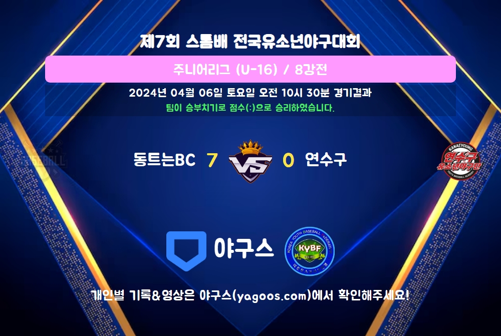 | 팀명 | 1회 | 2회 | 3회 | 4회 | 5회 | 6회 | R | H | E | B | L |