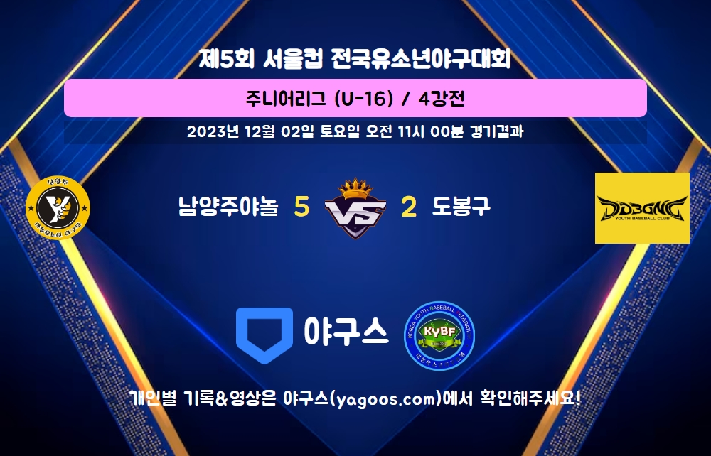 | 팀명 | 1회 | 2회 | 3회 | 4회 | 5회 | 6회 | R | H | E | B | L |