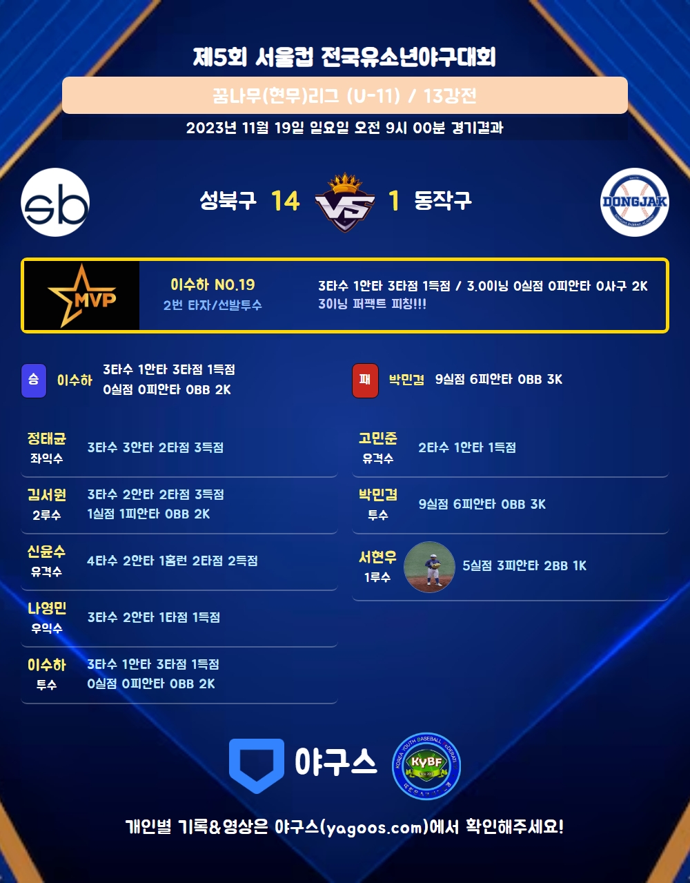 | 2 | 서현우(13) | - | - | 10 | 4 | 3 | 1 | 3 | 1 | 25 | 5 | 5 | 0 |