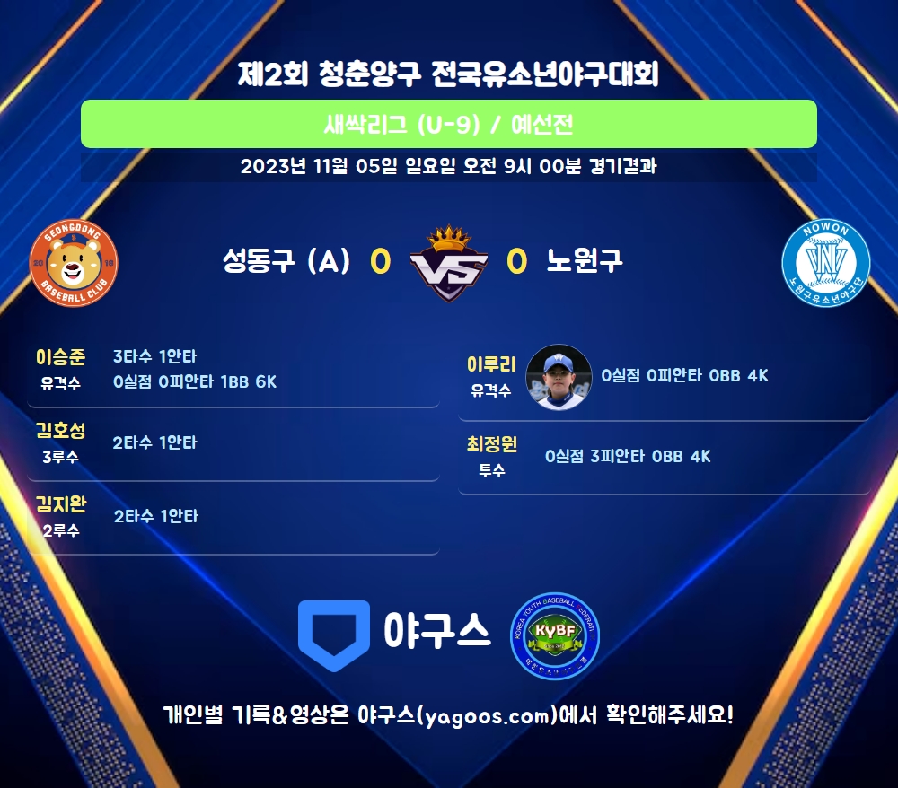 | 5 | 포 | 김도윤(45) | - | 2플 | - | 삼진 | - | 2 | 0 | 0 | 0 | 0 | 0 | - | 1 | 0.000 |