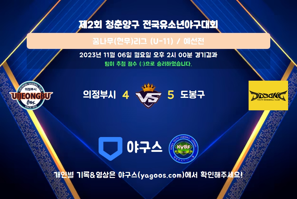 | 팀명 | 1회 | 2회 | 3회 | 4회 | 5회 | R | H | E | B | L |