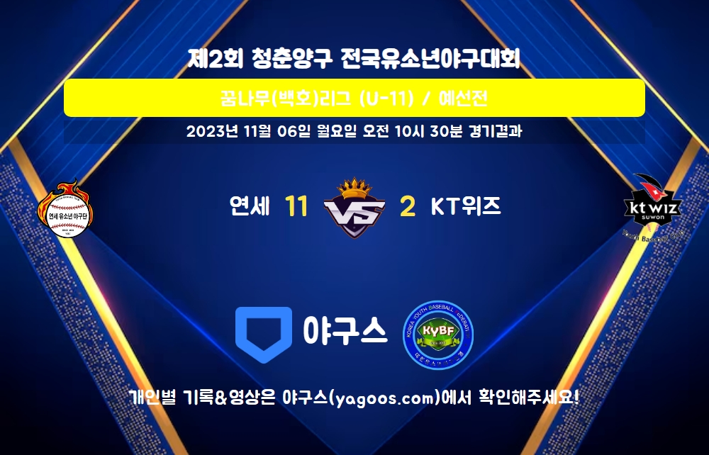 | 팀명 | 1회 | 2회 | 3회 | 4회 | 5회 | R | H | E | B | L |