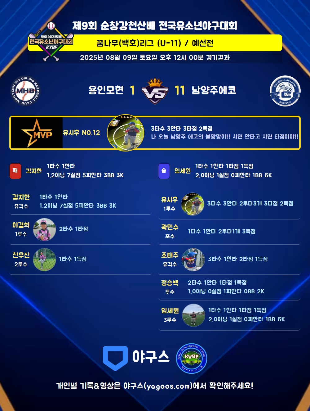 | 4 | 투 | 정승백(11) | 중안(1타점) | 투땅 | - | - | - | 2 | 1 | 1 | 1 | - | - | - | - | 0.500 |