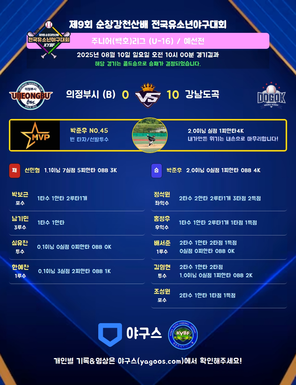 해당 경기는 콜드승으로 승패가 결정되었습니다.