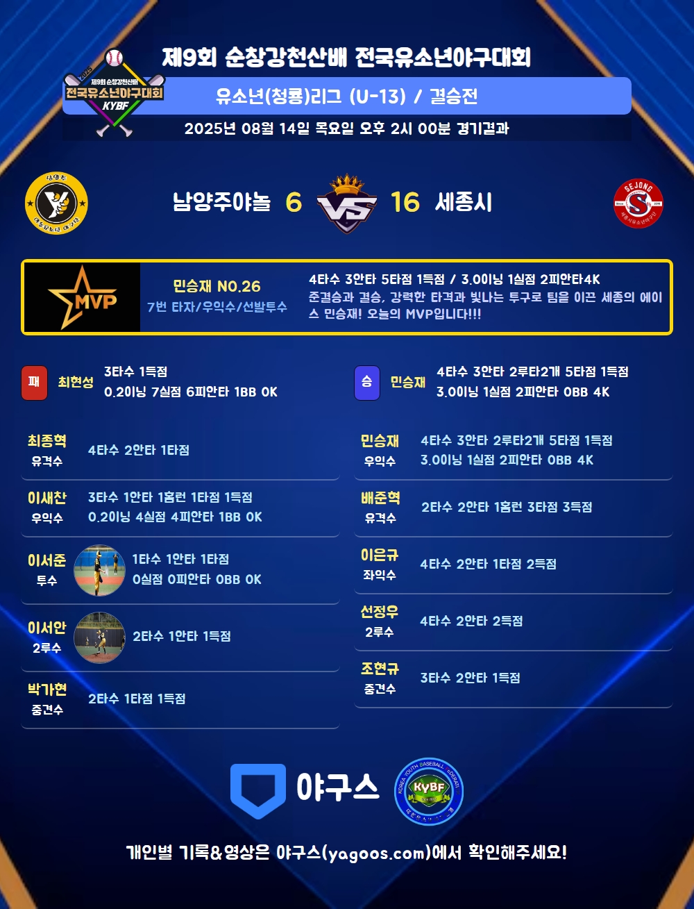 준결승과 결승, 강력한 타격과 빛나는 투구로 팀을 이끈 세종의 에이스 민승재! 오늘의 MVP입니다!!!