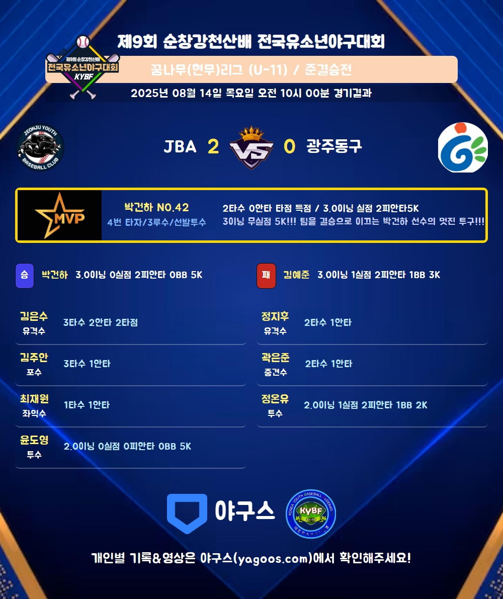 | 1 | 김예준(13) | 패 | 3.0 | 12 | 10 | 2 | - | 2 | 3 | 45 | 1 | 1 | 3.00 |