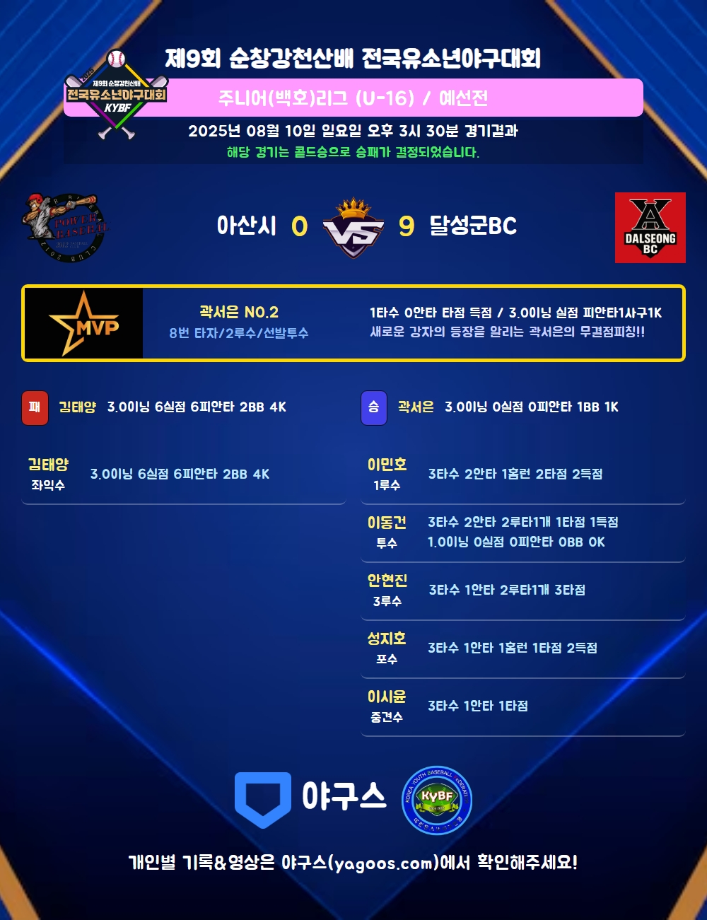 해당 경기는 콜드승으로 승패가 결정되었습니다.
