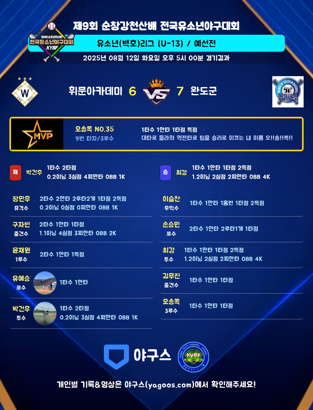 | 6 | 투 | 최강(21) | 3내안(1타점) | - | 4구 | 1 | 1 | 1 | 2 | - | 1 | 1 | - | 1.000 |