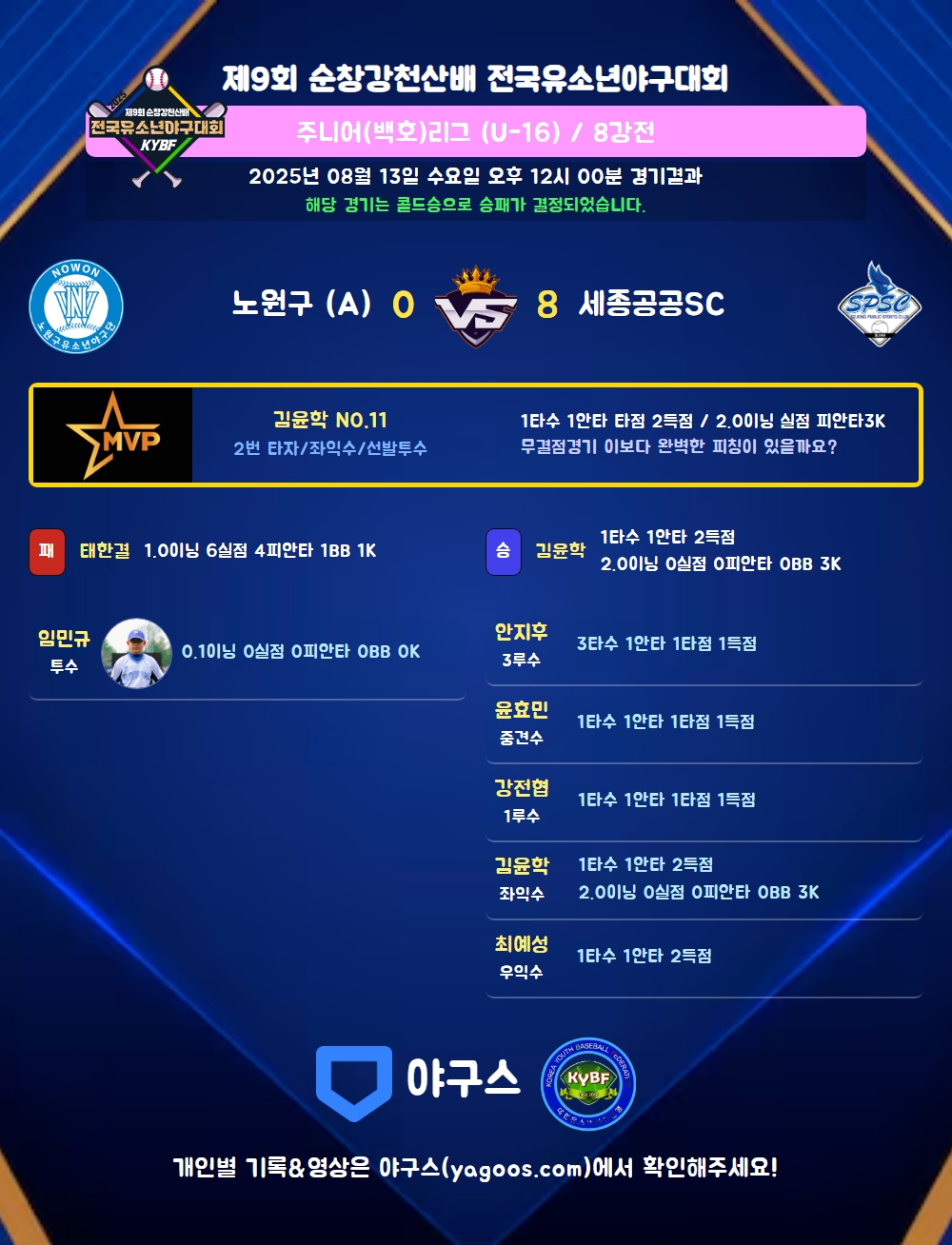 해당 경기는 콜드승으로 승패가 결정되었습니다.