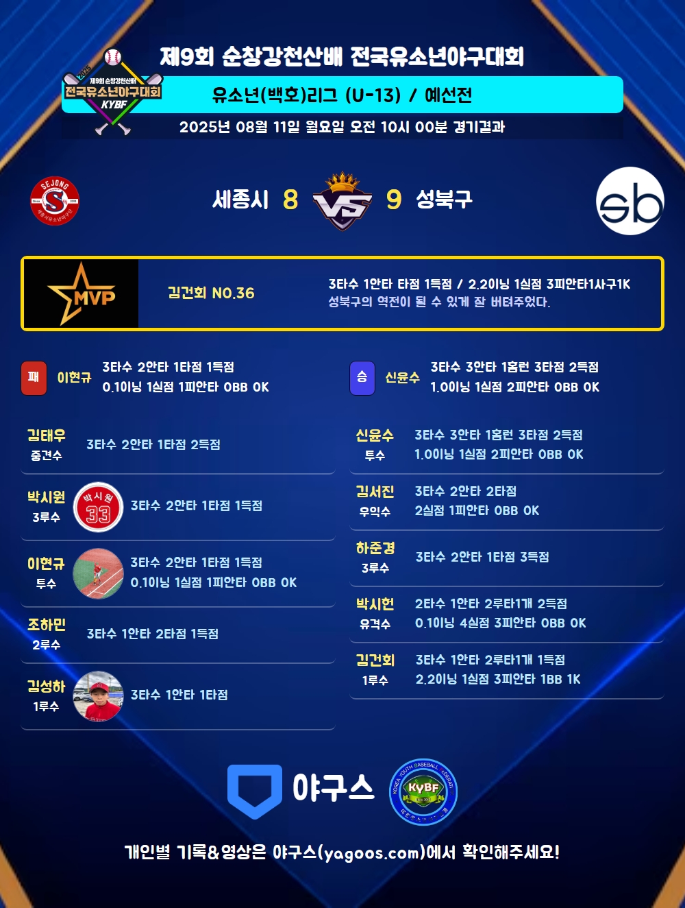 | 3 | 一 | 김성하(42) | 2땅(1타점) | 좌중안 | 3땅 | - | 3 | 1 | 1 | - | - | 1 | - | - | 0.333 |