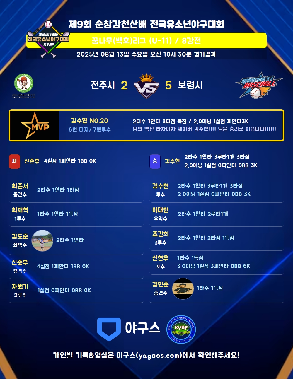 | 7 | 좌 | 김도준(16) | - | 좌안 | - | 투땅 | - | 2 | 1 | - | - | - | 2 | - | - | 0.500 |