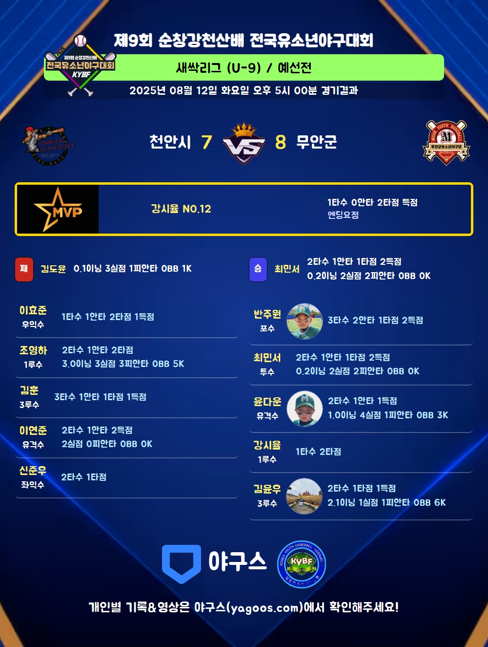 | 3 | 김도윤(2) | 패 | 0.1 | 7 | 2 | 1 | - | 5 | 1 | 30 | 3 | 3 | 0 |