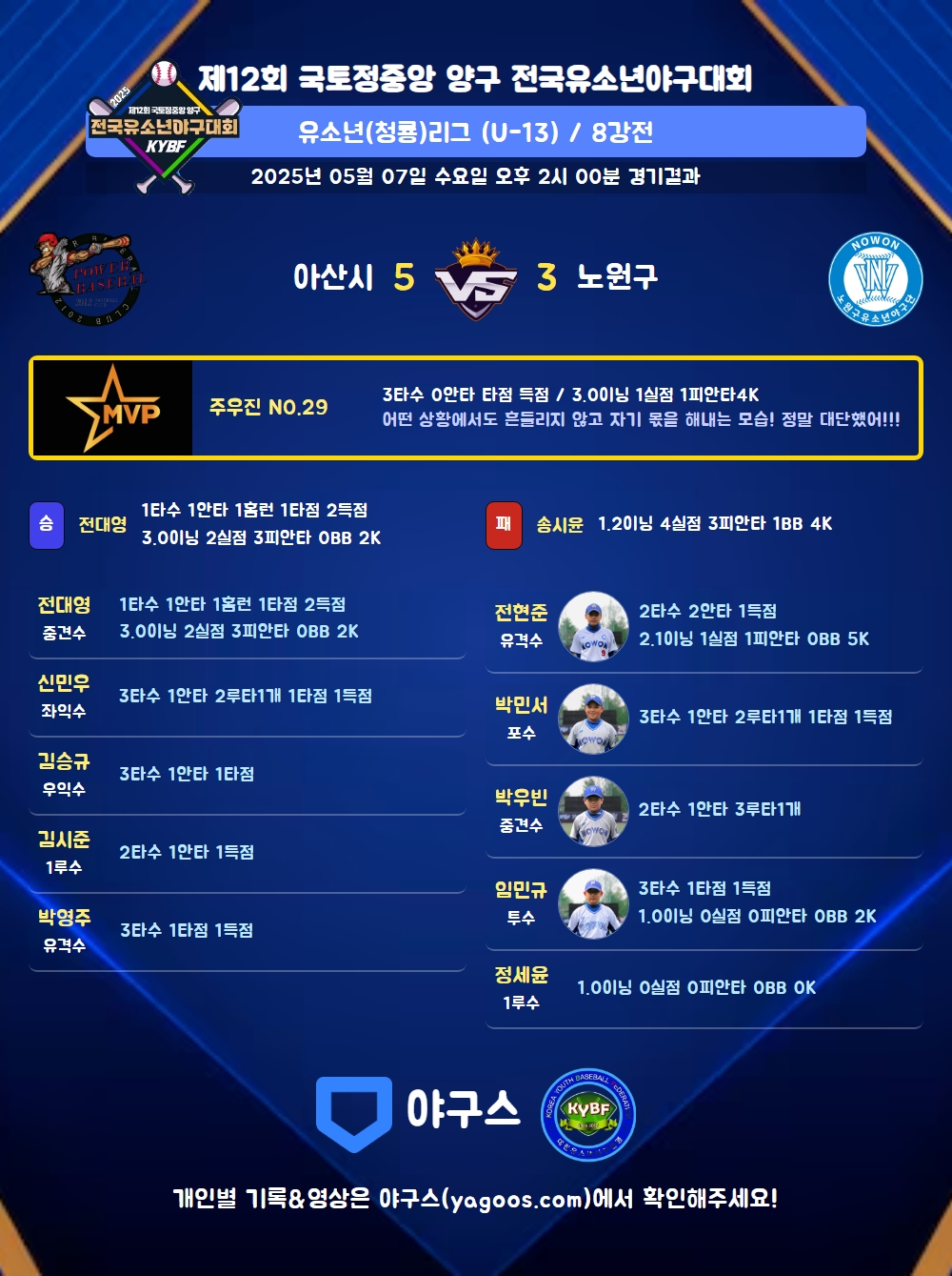 | 2루타 | 신민우(6) 박민서(13) |