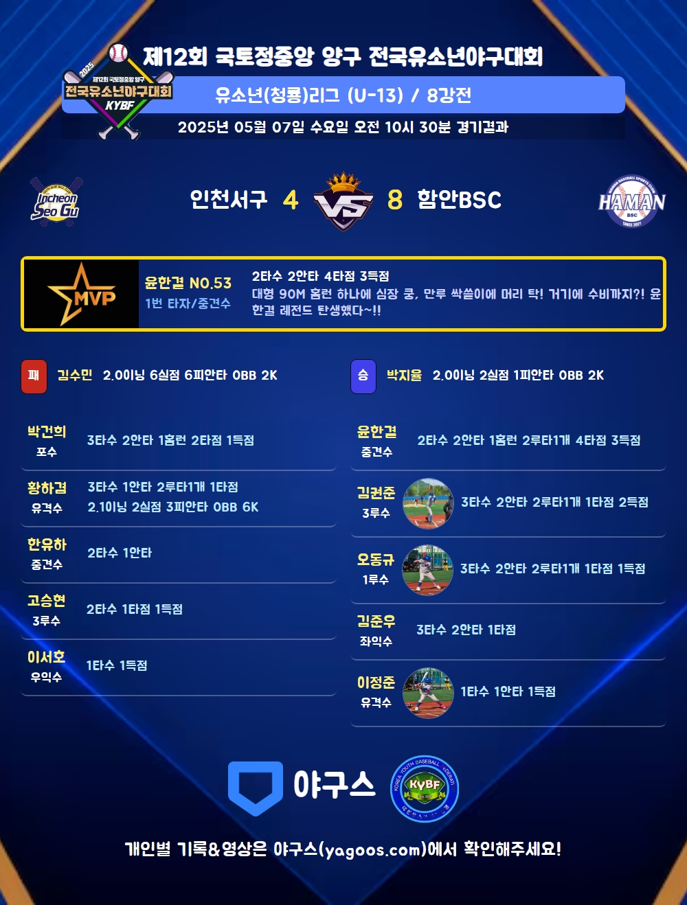 | 홈런 | 박건희(11) 윤한결(53) |