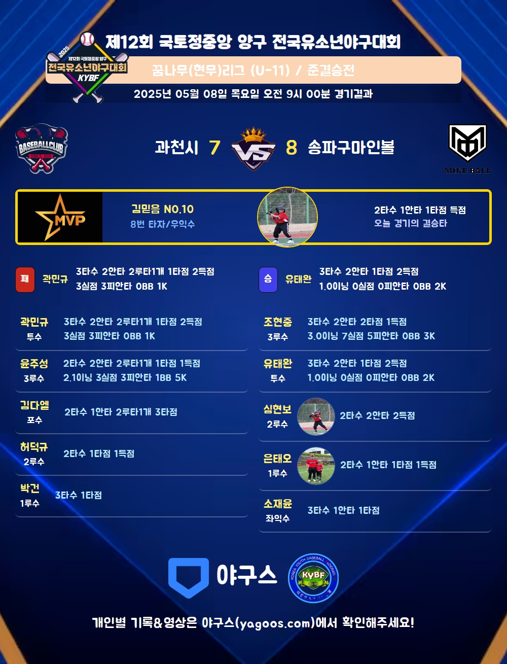 | 2루타 | 곽민규(77) 윤주성(31) 김다엘(36) |