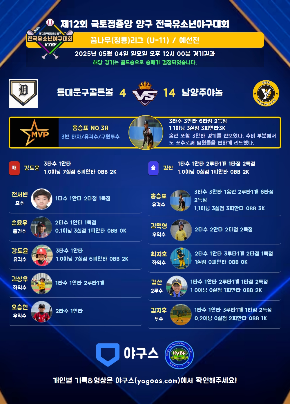 해당 경기는 콜드승으로 승패가 결정되었습니다.