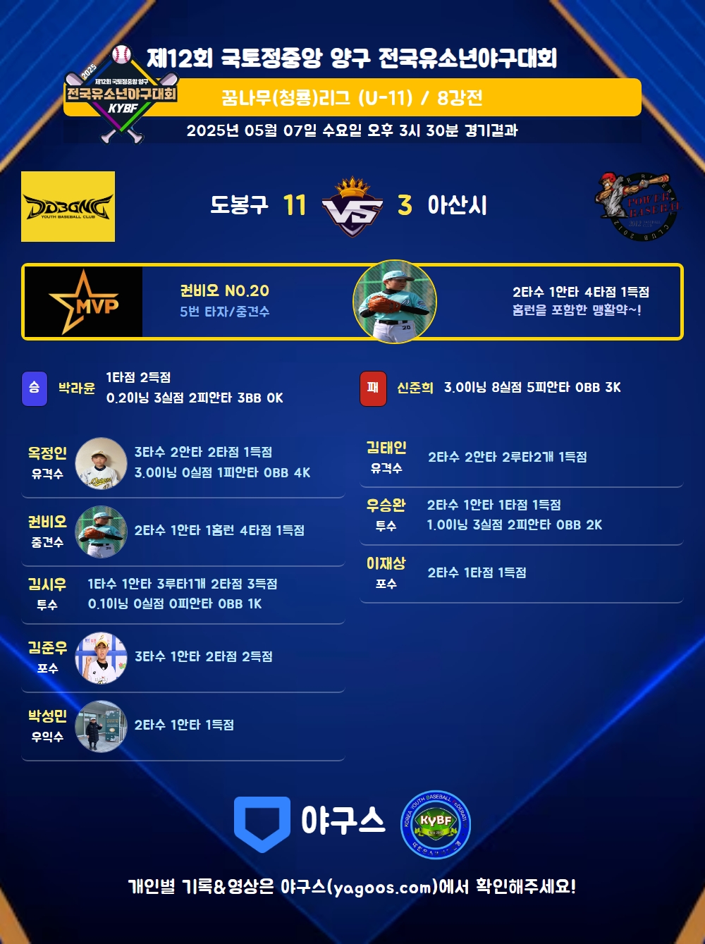 | 5 | 포 | 이재상(111) | 유야선(1타점) | - | 3직 | - | - | 2 | 0 | 1 | 1 | - | - | - | - | 0.000 |