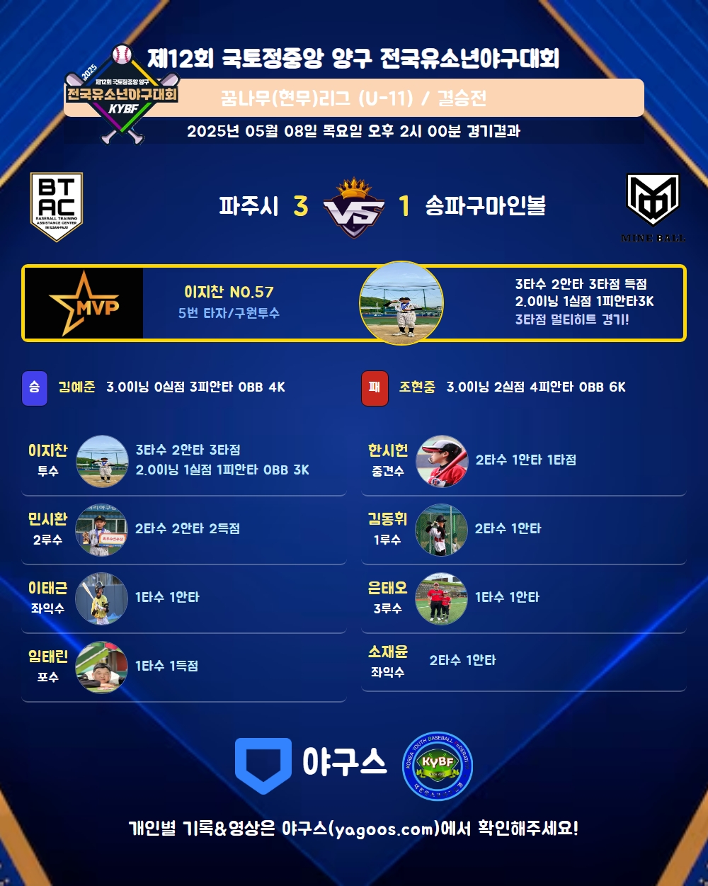 | 1 | 김예준(31) | 승 | 3.0 | 11 | 11 | 3 | - | - | 4 | 39 | - | - | 0 |