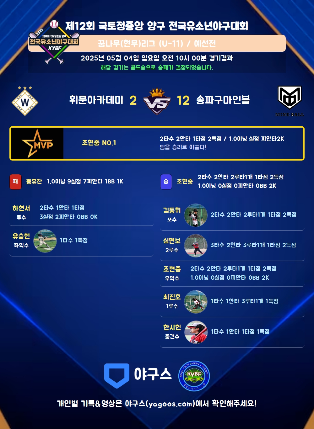 해당 경기는 콜드승으로 승패가 결정되었습니다.