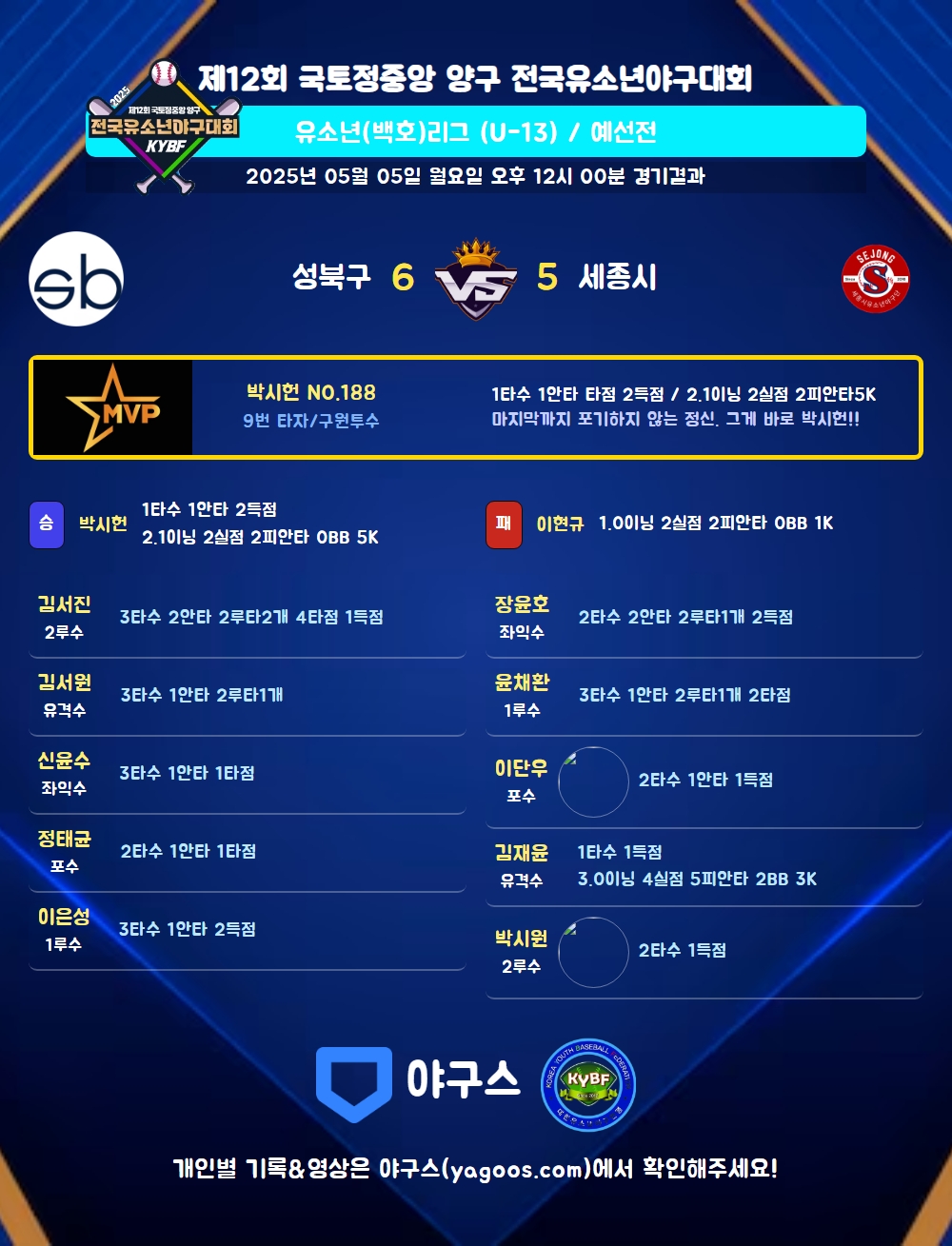 | 5 | 투 | 이현규(99) | 좌실 | - | 투희번 | - | - | - | 1 | 0 | - | - | - | - | - | - | 0.000 |