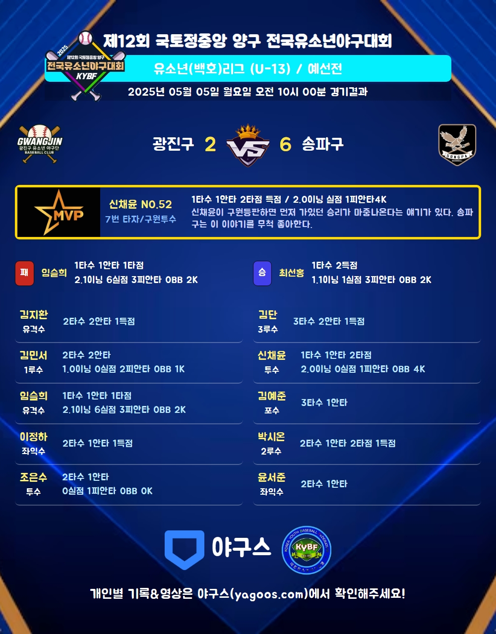 | 8 | 좌 | 윤서준(56) | - | 중플 | 2내안 | - | - | - | 2 | 1 | - | - | - | 1 | - | - | 0.500 |